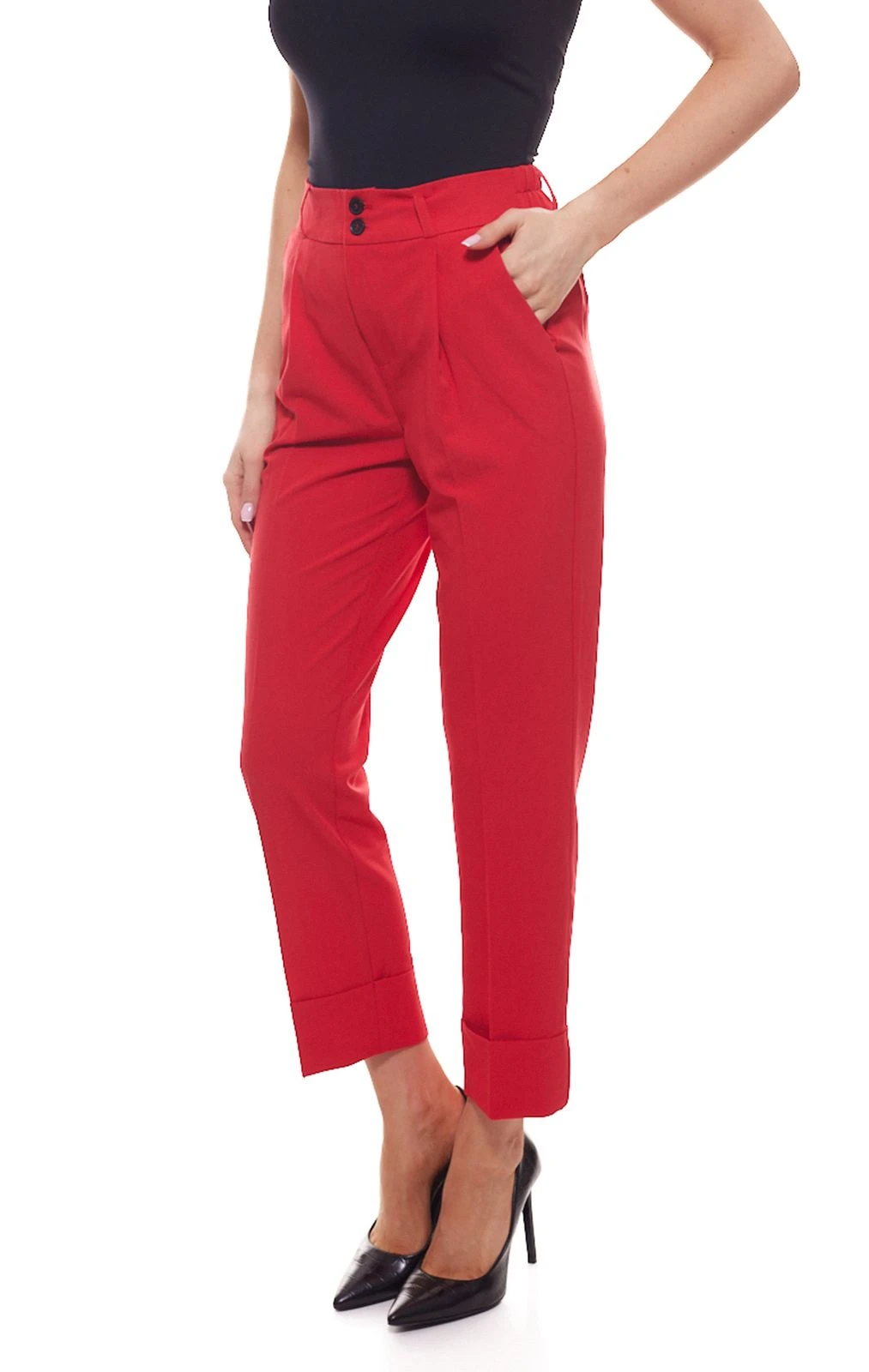AjC Bügelfalten-Hose klassische Damen Stoff-Hose mit Eingrifftaschen Rot