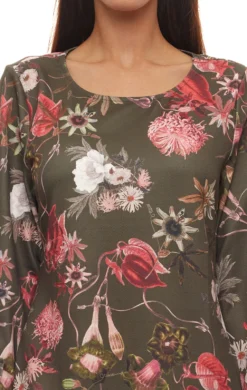 - femininer Rundhalsausschnitt, schmale 3/4-Ärmel