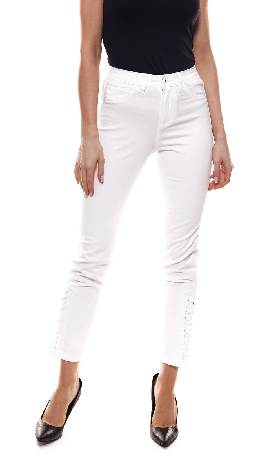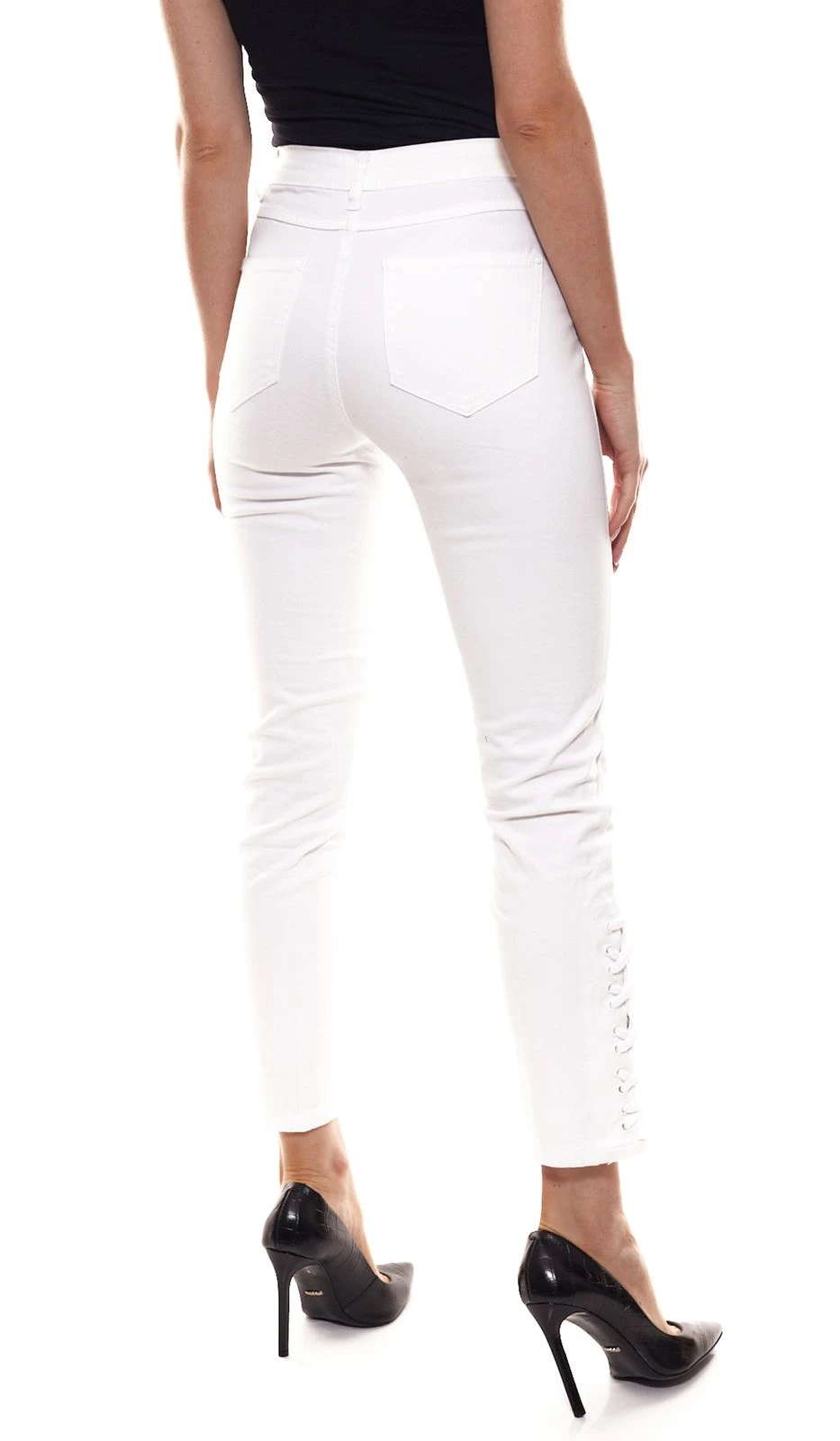 AjC Hose Sommer-Hose trageangenehme Damen Stretch-Hose mit Ziertaschen Weiß