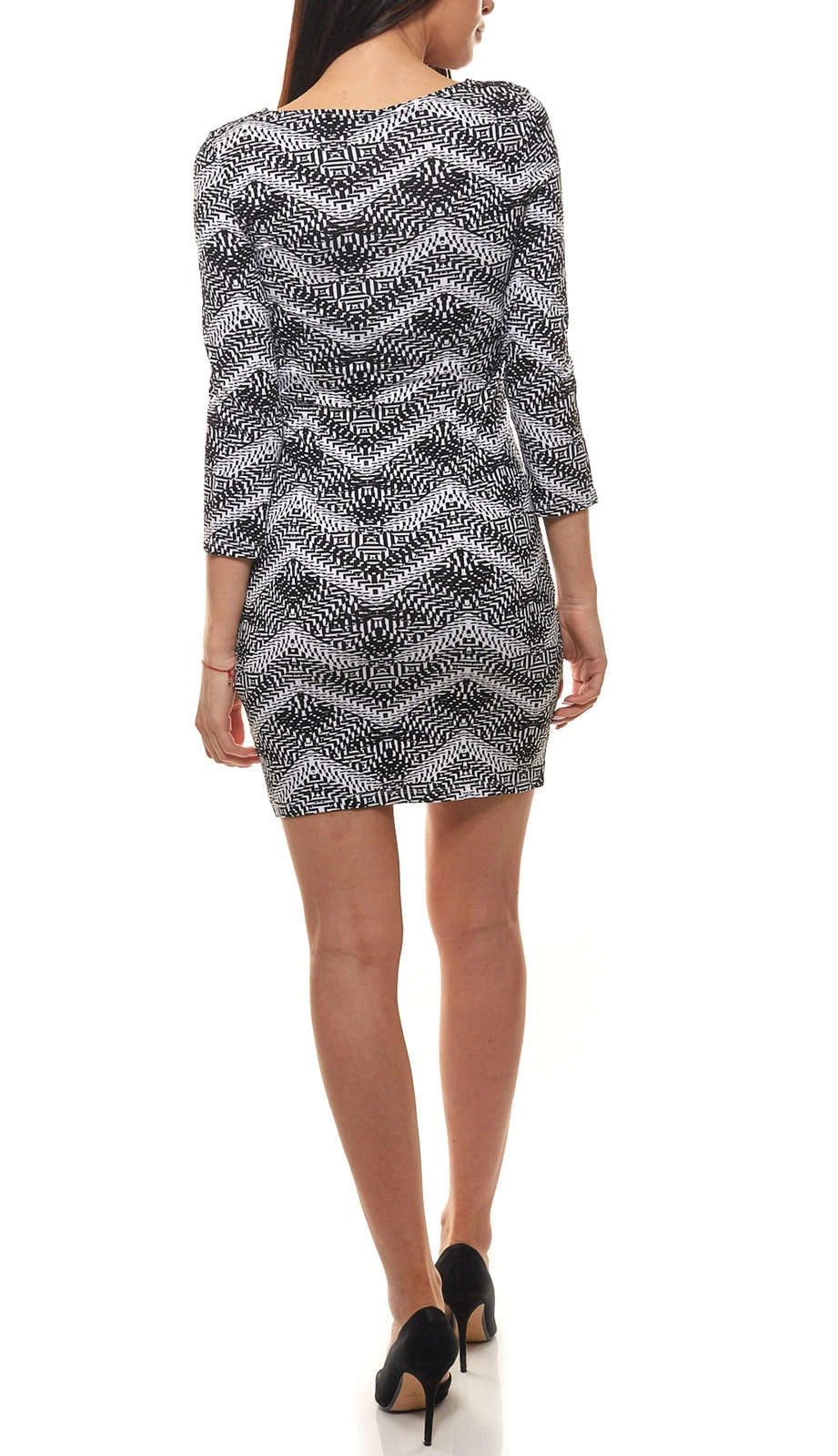 AjC Jersey-Kleid weiches Damen Mini-Kleid mit Zick Zack-Muster Schwarz/Weiß