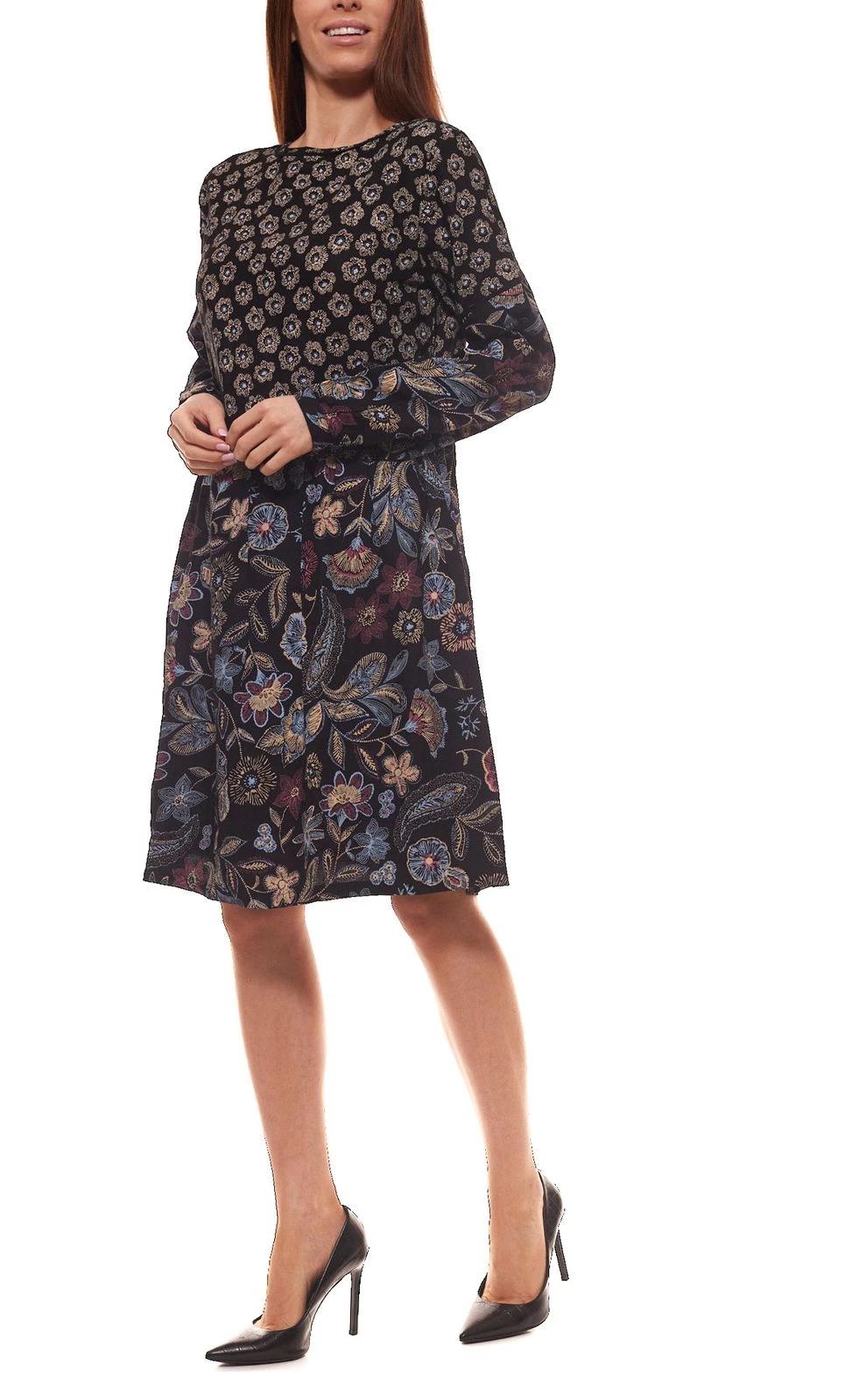 Aniston CASUAL Kleid verspieltes Damen Midi-Kleid mit trendigem Mustermix Schwarz