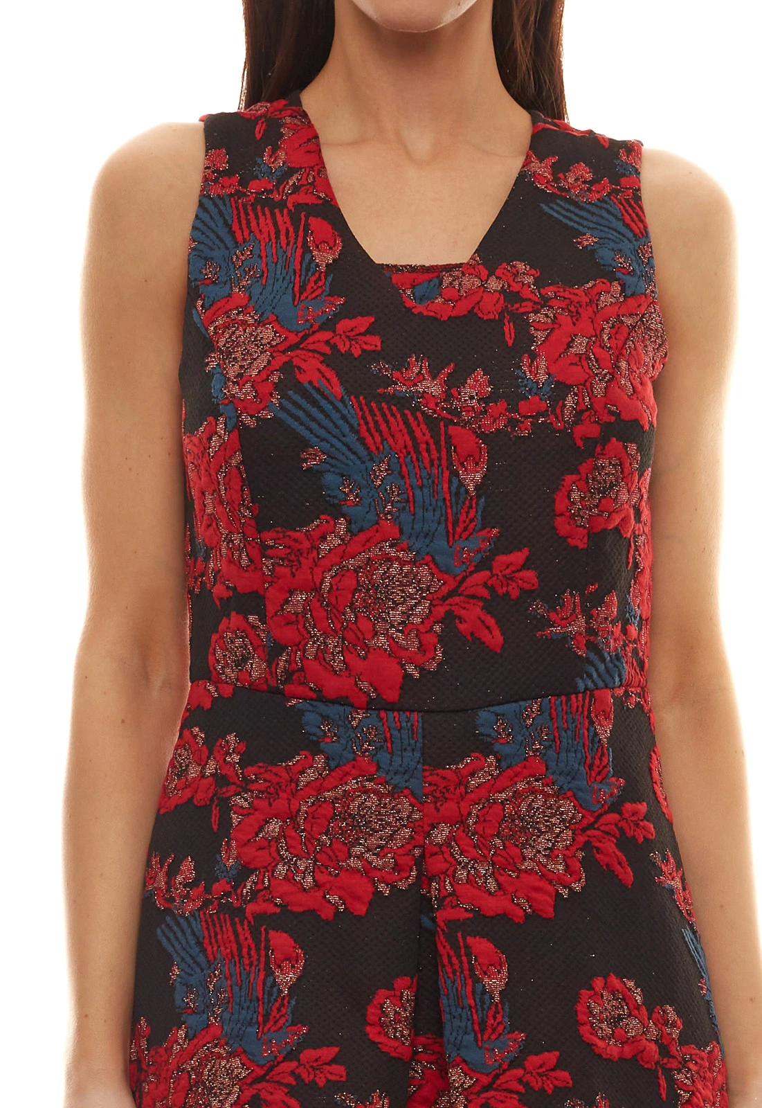 Aniston SELECTED Jersey-Kleid geblümtes Damen Midi-Kleid im Jacquard-Look Rot-Schwarz