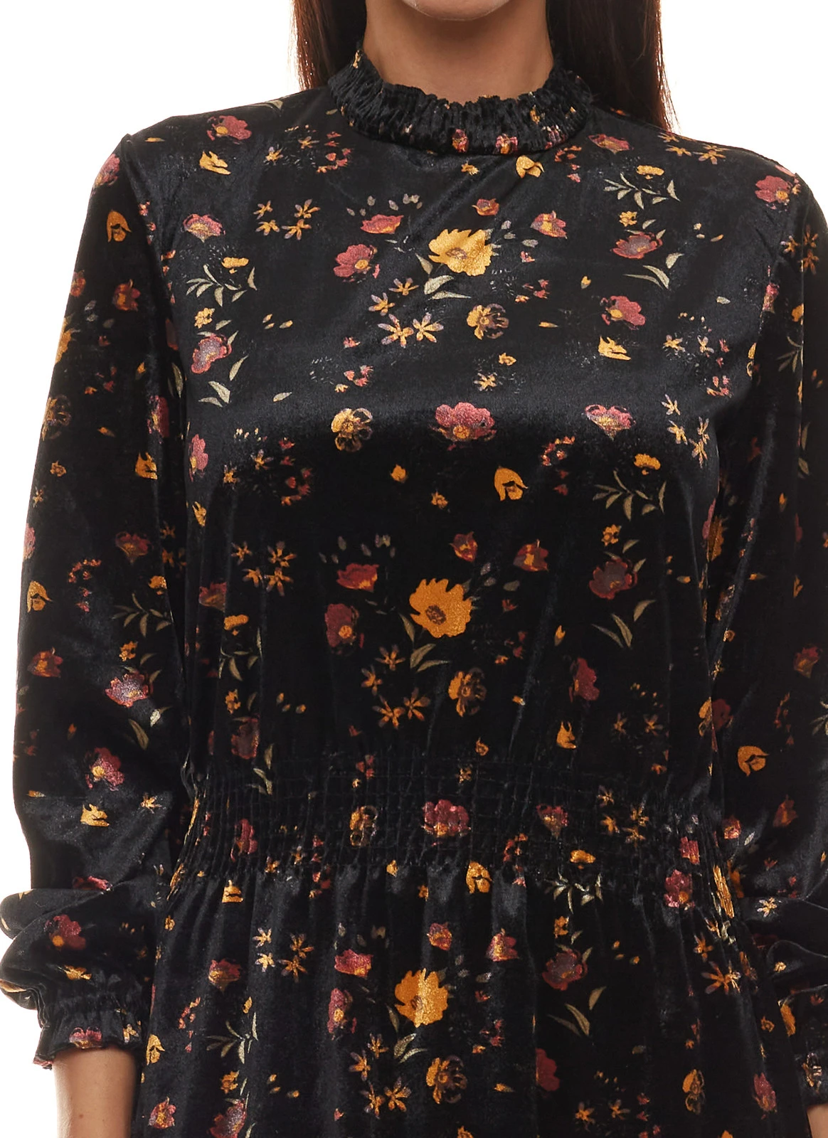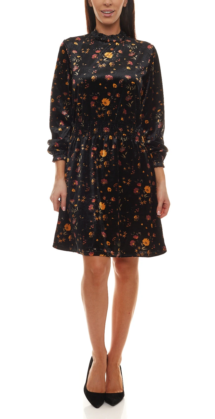 Aniston Selected Midi-Kleid modisches Damen Freizeit-Kleid mit zartem Blumenprint Schwarz