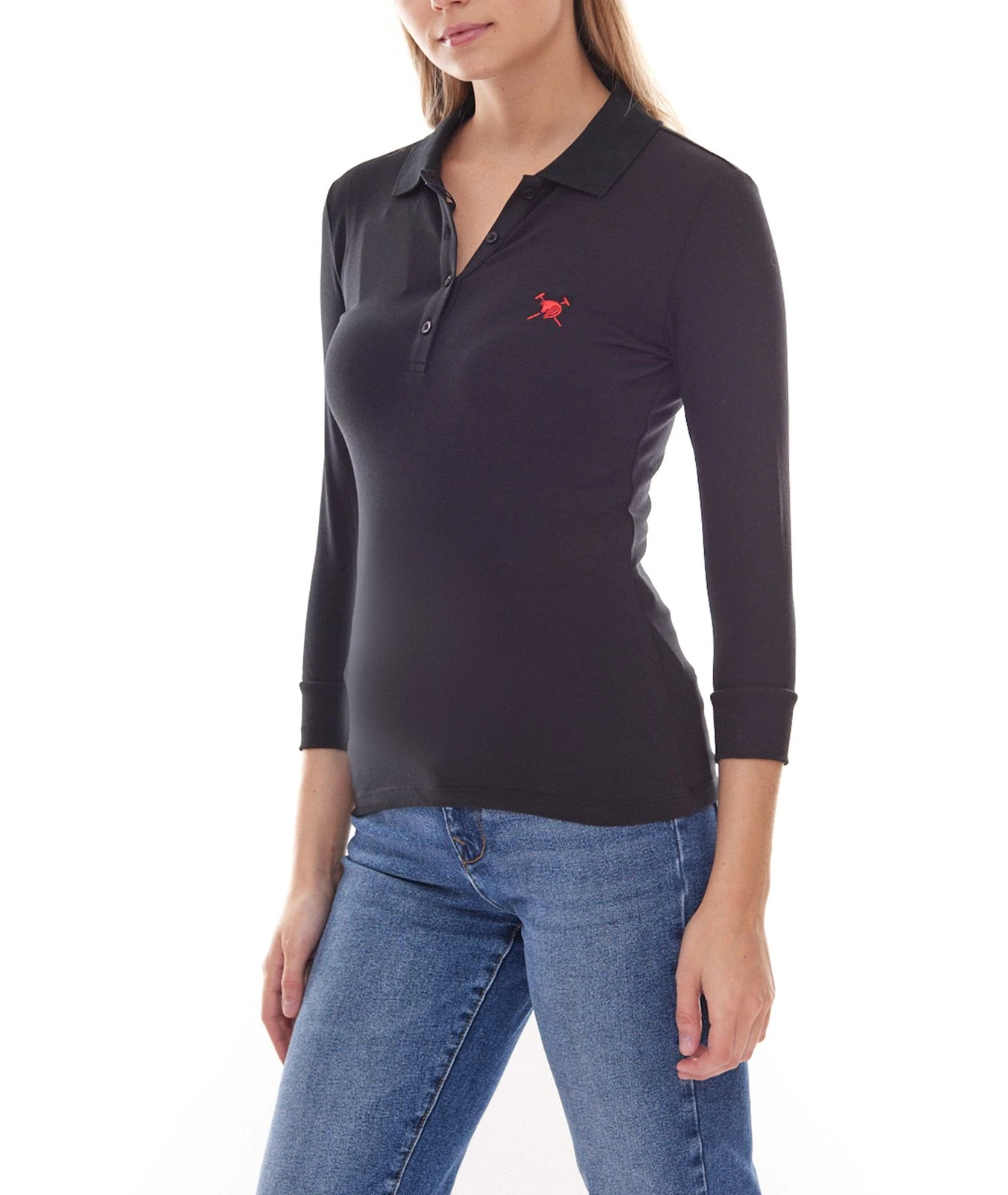 AUDEN CAVILL Damen Polo-Hemd Langarm Freizeit-Shirt Pia Schwarz