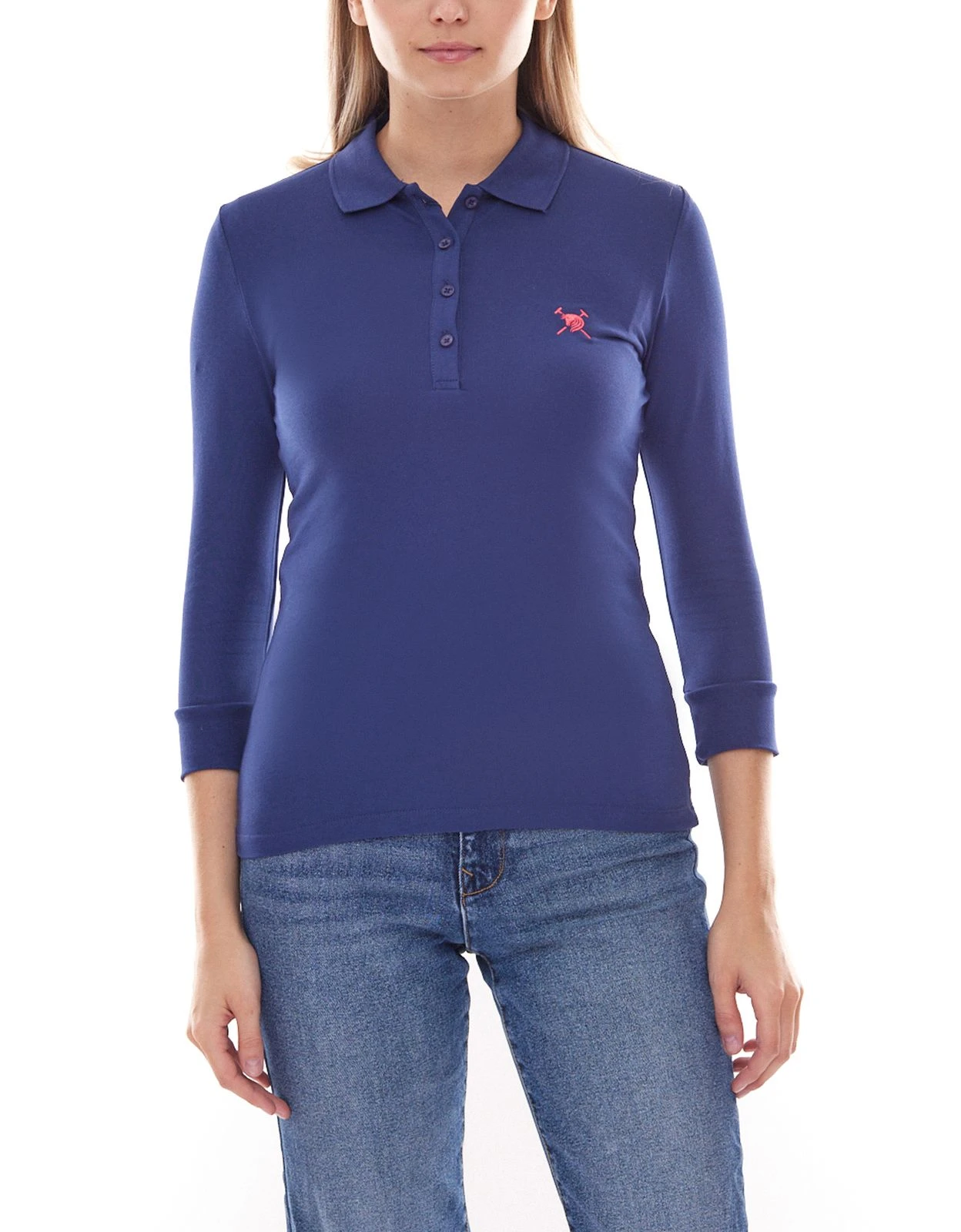 AUDEN CAVILL Pia Damen Polo-Hemd Langarm Dunkelblau