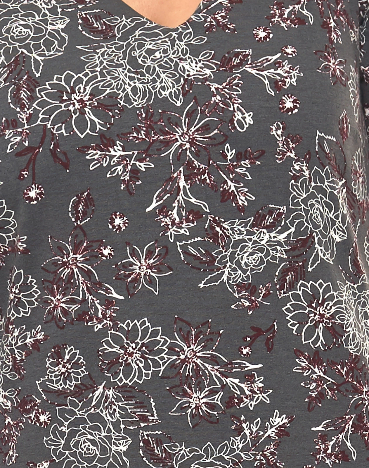 bodyright Bluse stretchige Damen Shaping-Tunika mit V-Ausschnitt Grau bedruckt