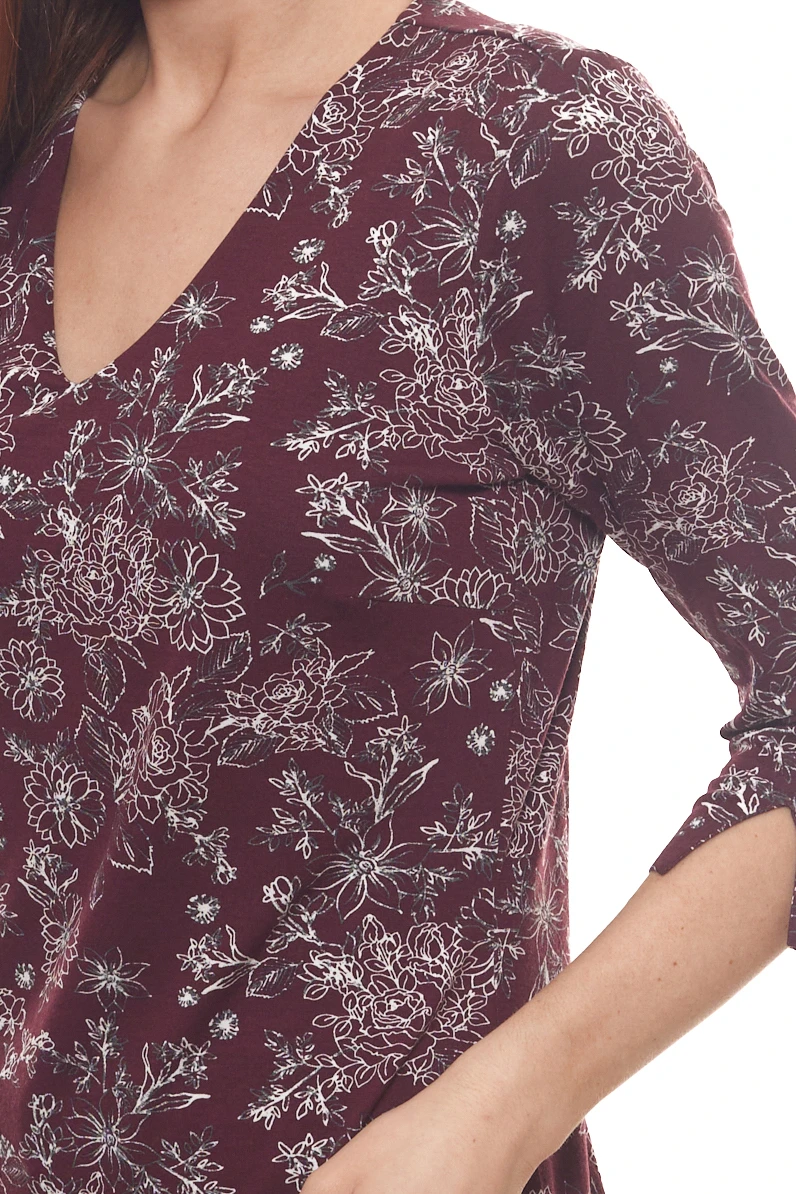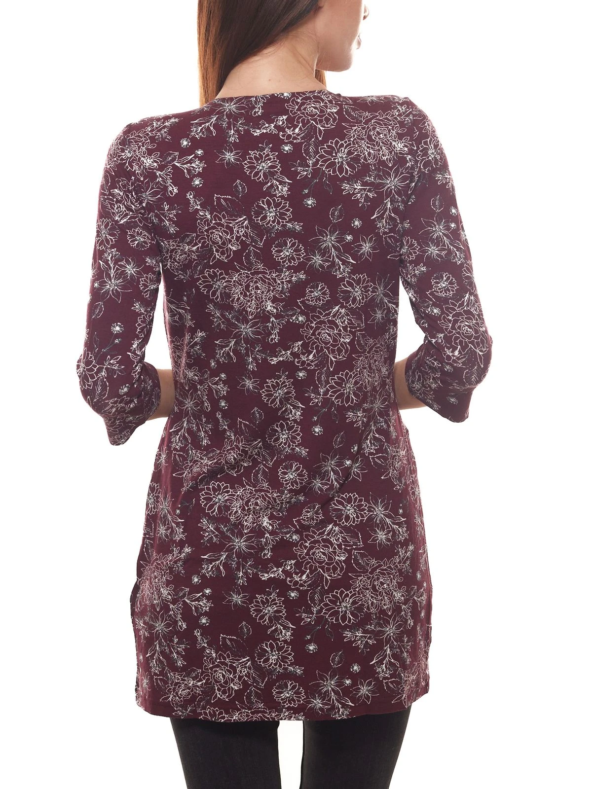 bodyright Tunika süßes Damen Shirt mit Shaping Funktion und 3/4 Arm Print Bordeaux
