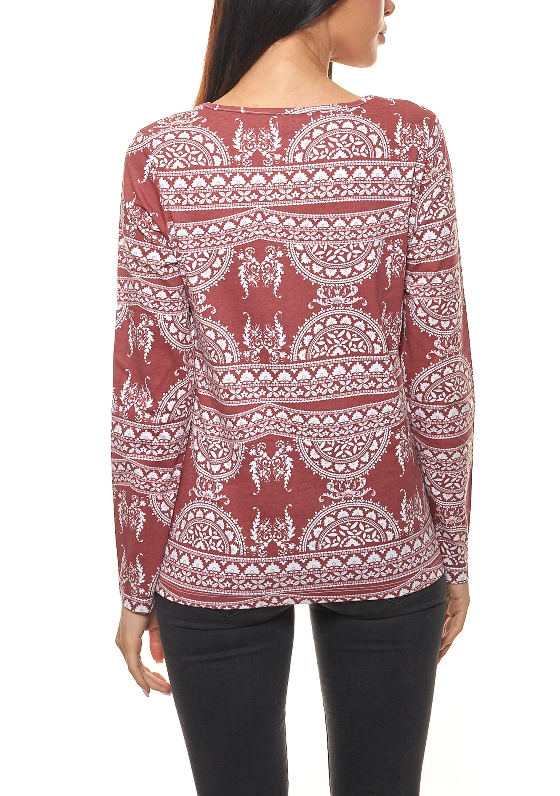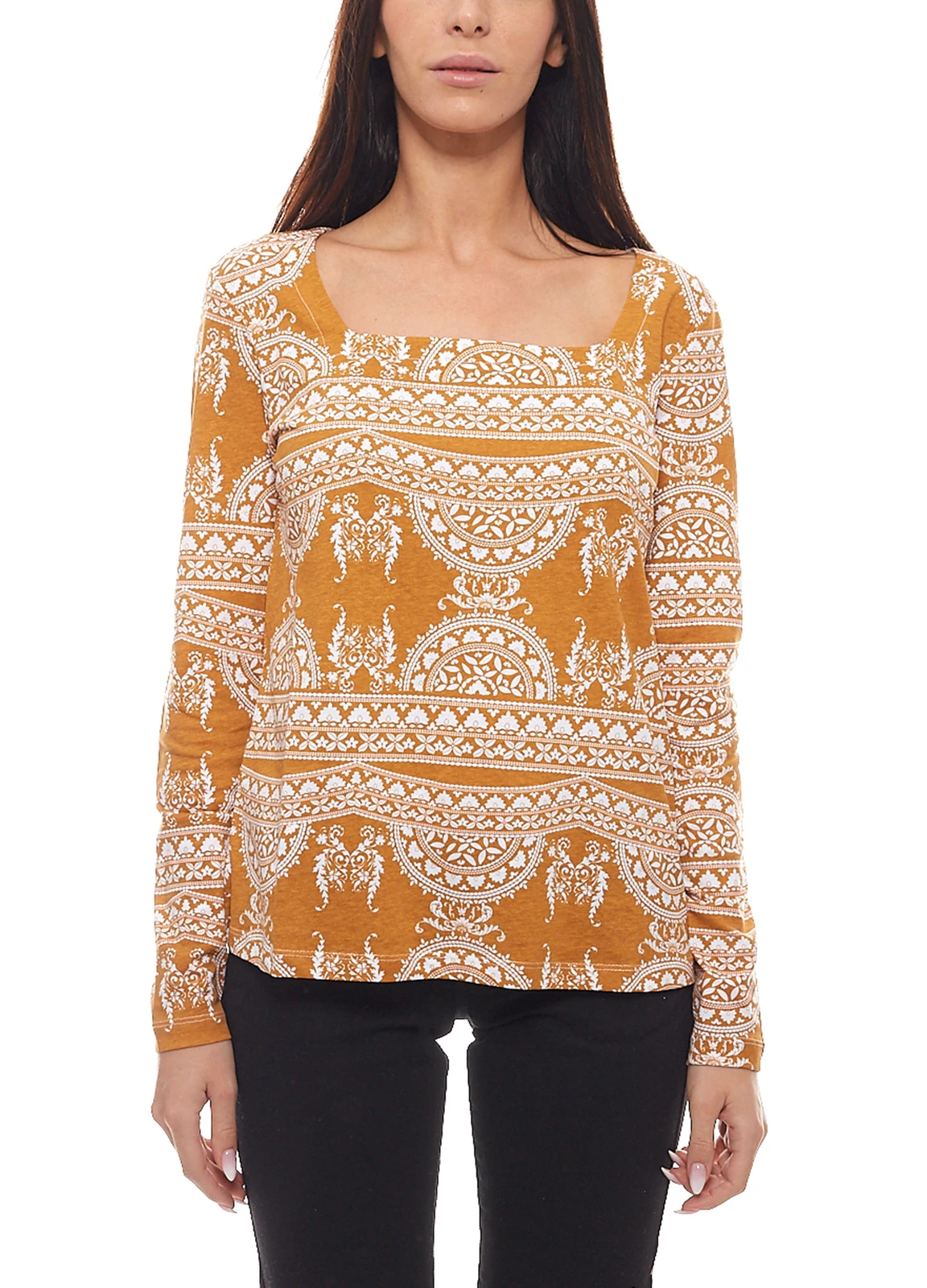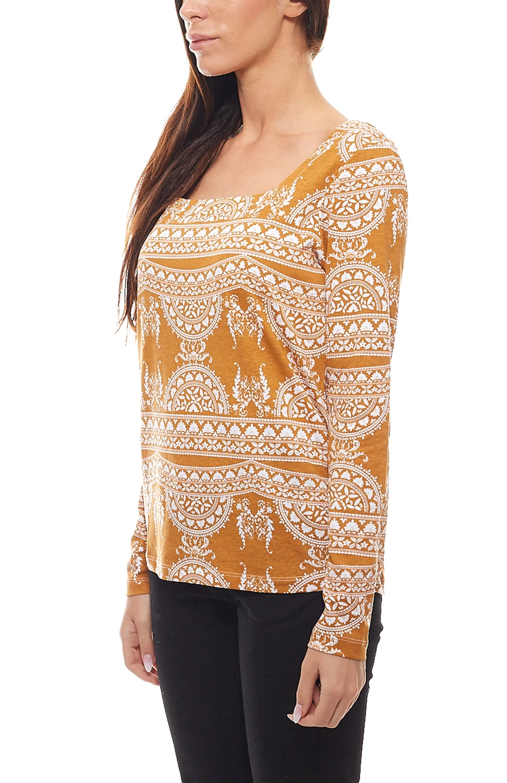 Cheer Langarm-Shirt gemustertes Damen Herbst-Shirt mit rechteckigem Ausschnitt in tollen Farben
