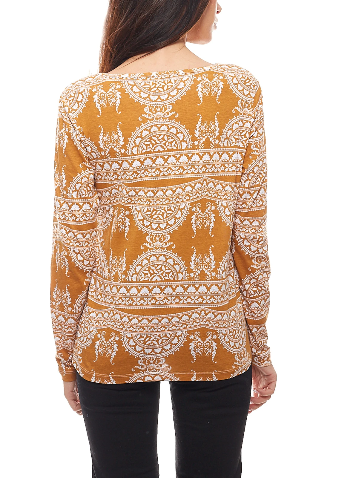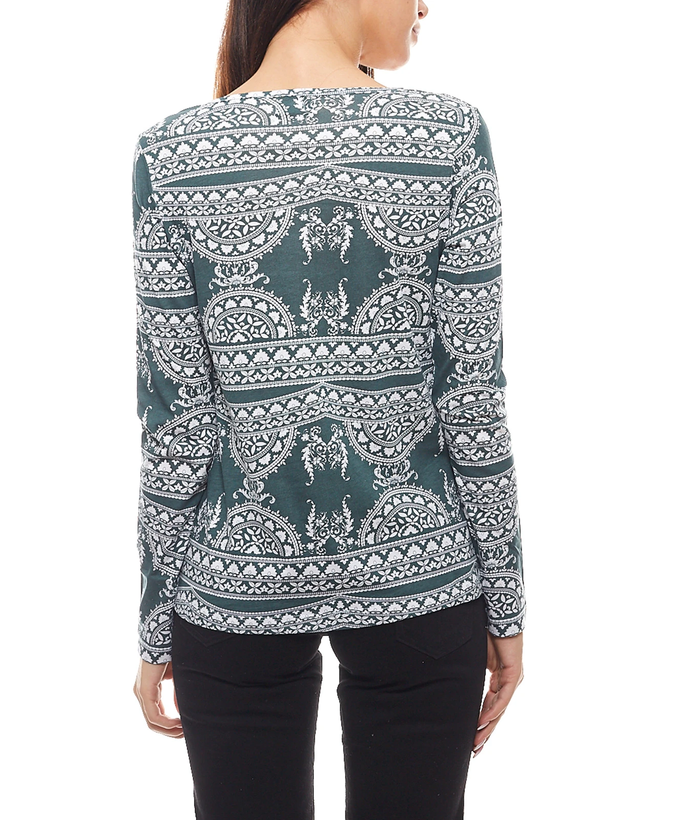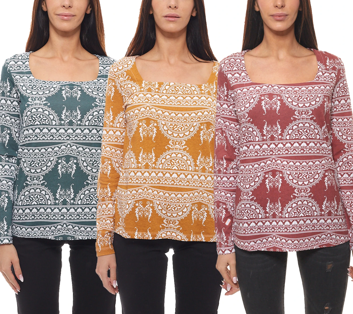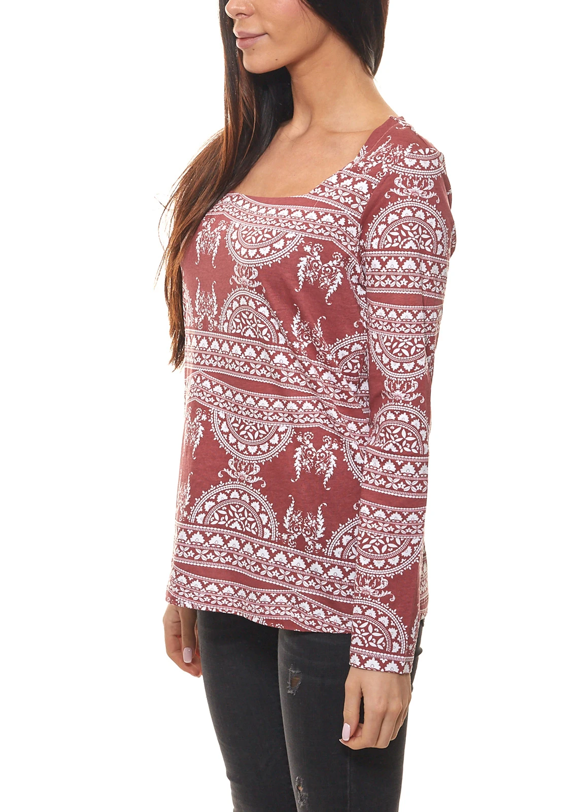 Cheer Langarm-Shirt gemustertes Damen Herbst-Shirt mit rechteckigem Ausschnitt in tollen Farben