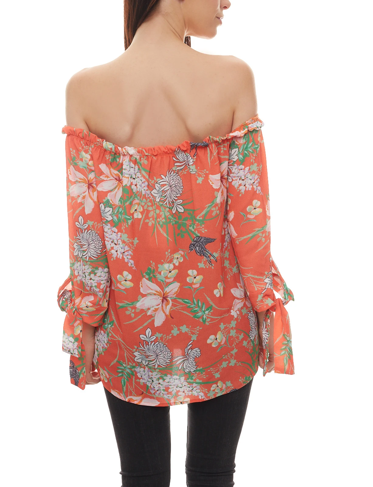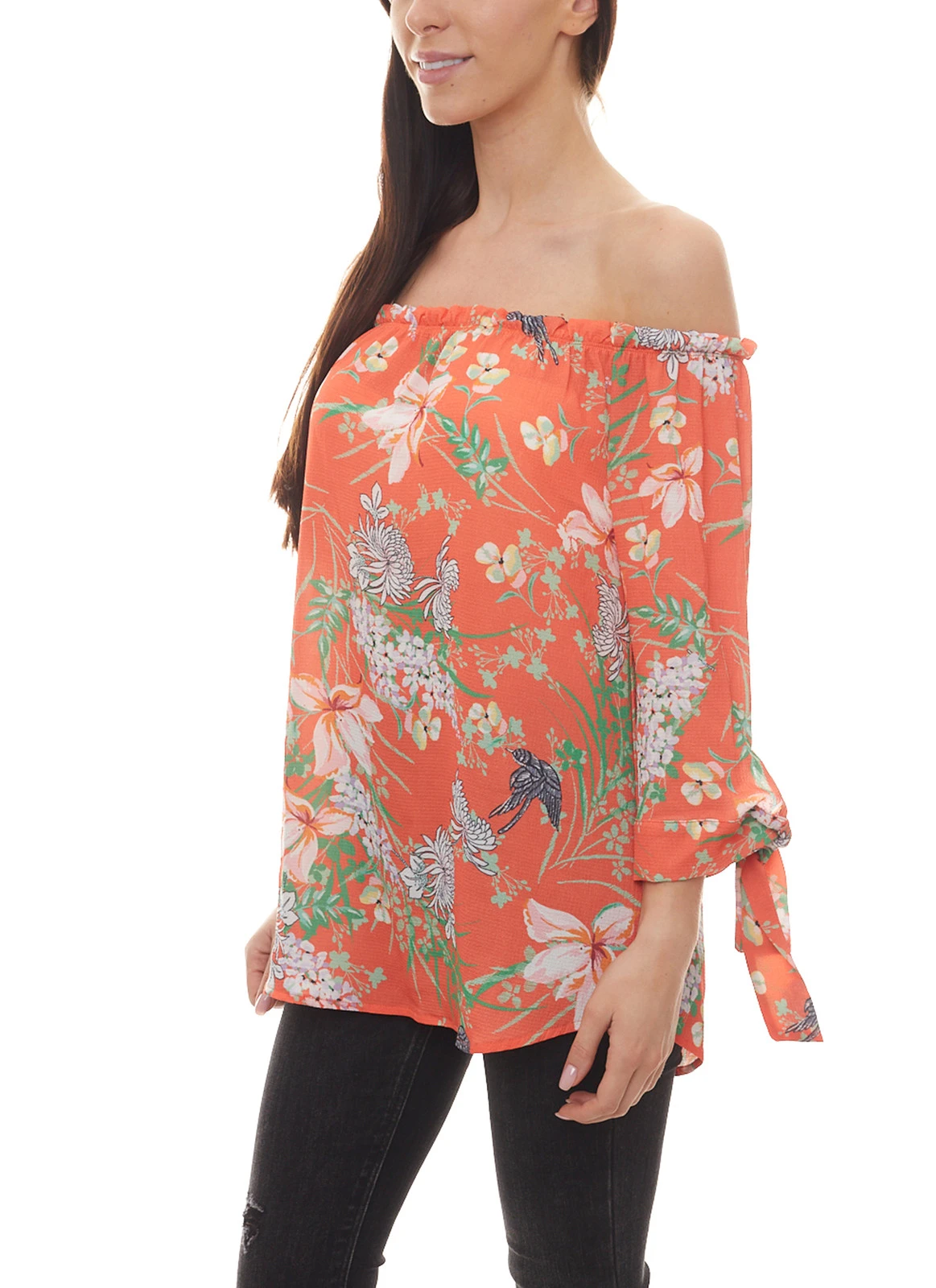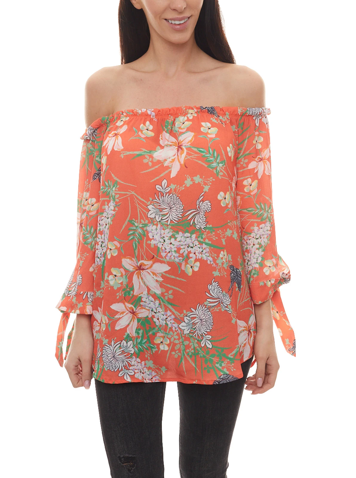 Cheer Sommer-Bluse floral bedruckte Damen Carmen-Bluse mit 3/4-Ärmeln Orange