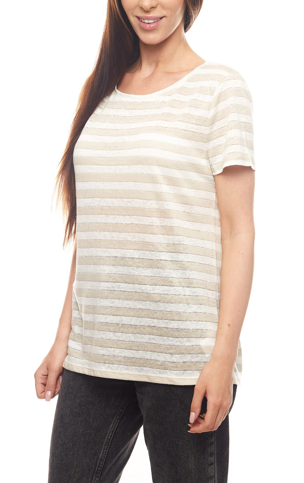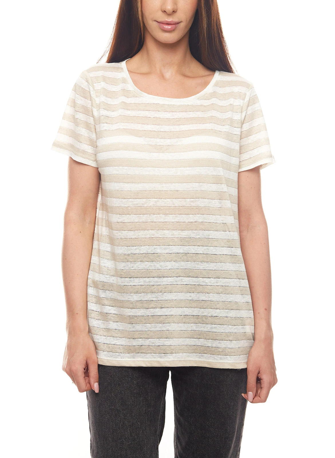 Christian Berg Leinen-T-Shirt klassisches Damen Freizeit-Shirt mit glitzernden Details Beige
