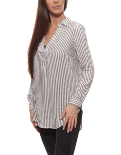Mavi Jeans Schlupf-Bluse Elegante Damen Long-Bluse Im Tunika-Stil Weiß