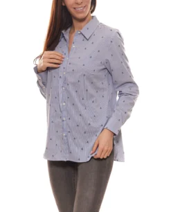 ONLY Beatrice Life V-Neck Shirt Florales Damen Blusen-Shirt Blau