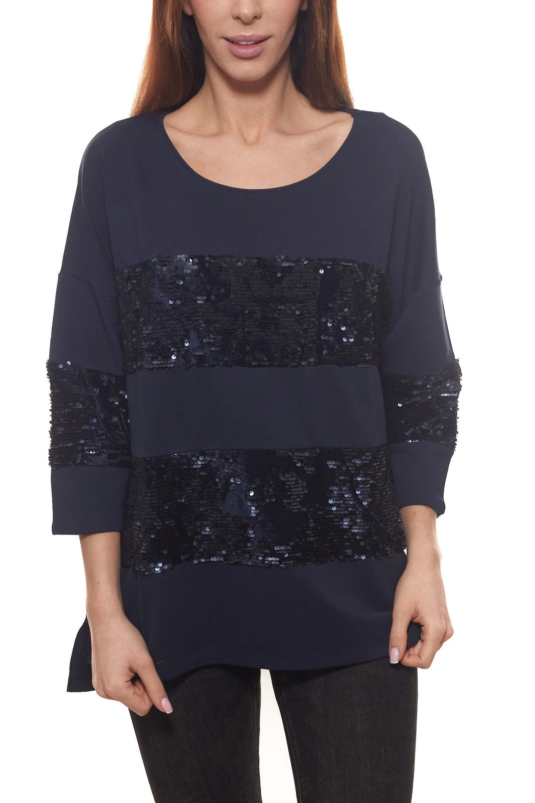 GUIDO MARIA KRETSCHMER 3/4 Arm Shirt exklusives Damen T-Shirt mit Pailletten Blau