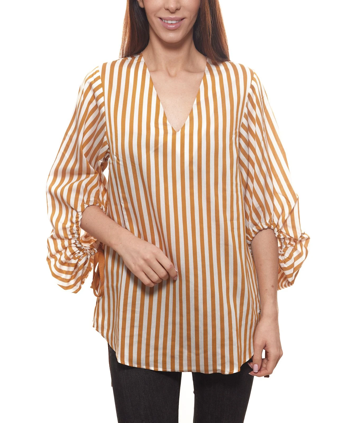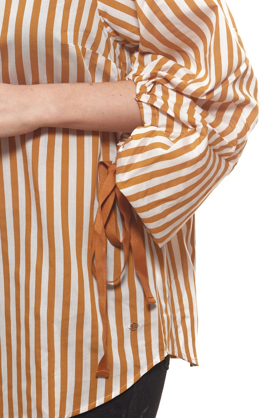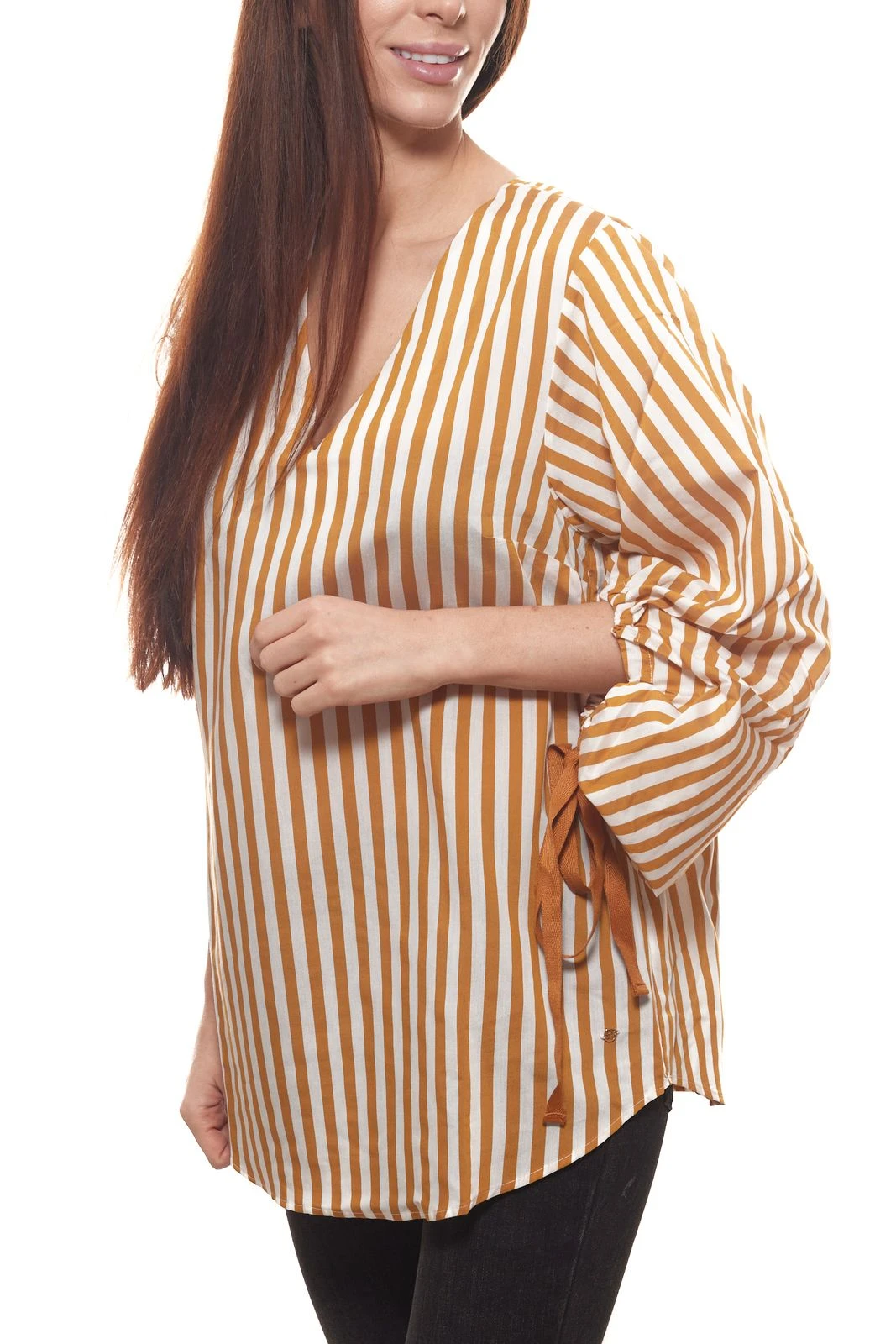 GUIDO MARIA KRETSCHMER Bluse ausgefallene Damen Langarm-Bluse in Streifen-Optik Hellbraun/Weiß
