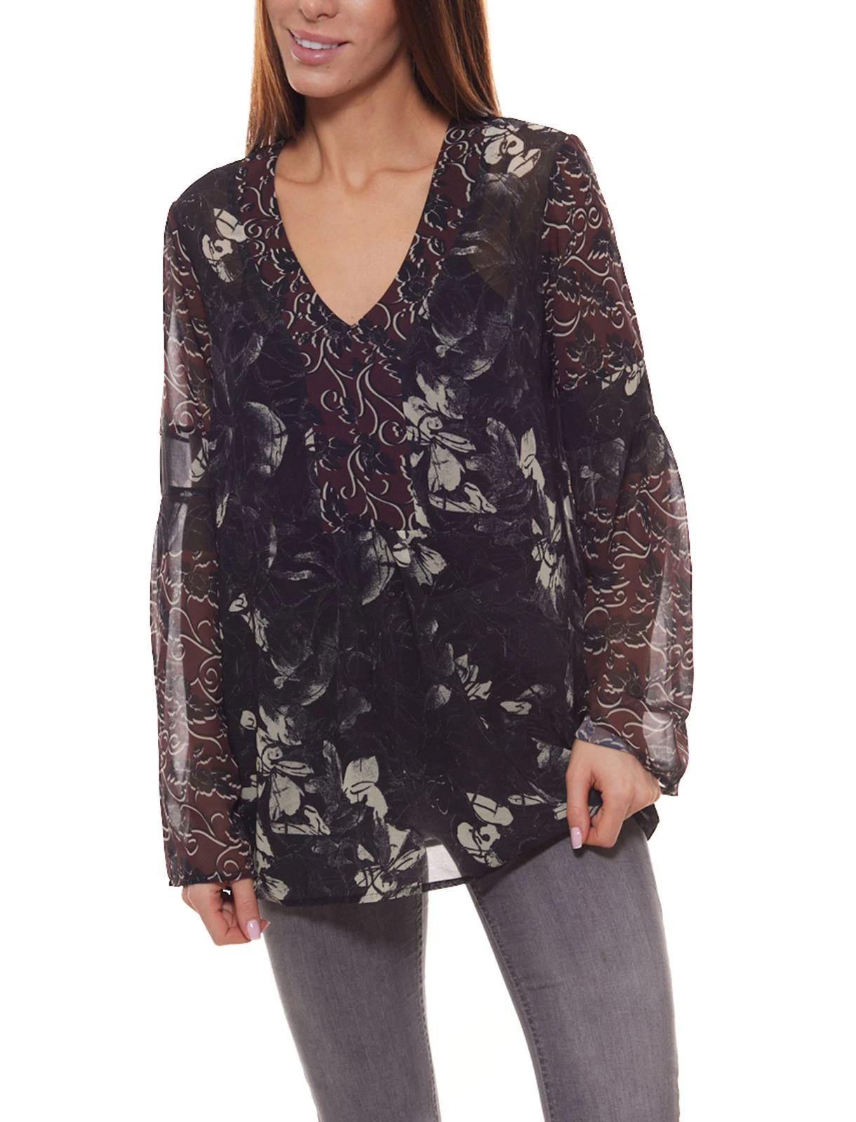 GUIDO MARIA KRETSCHMER Bluse feminines Damen Blusen-Shirt mit floralem Allover-Print Bunt