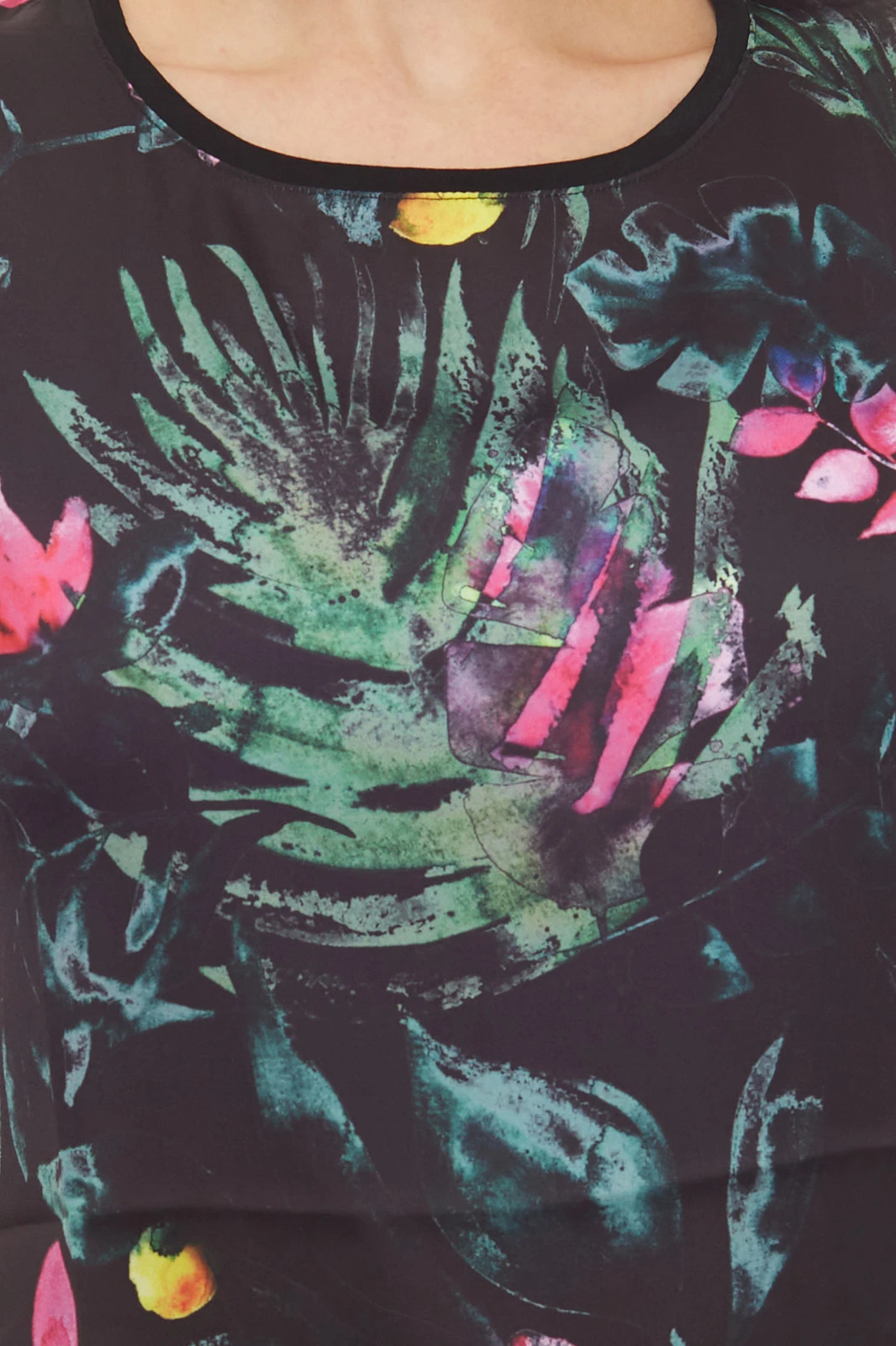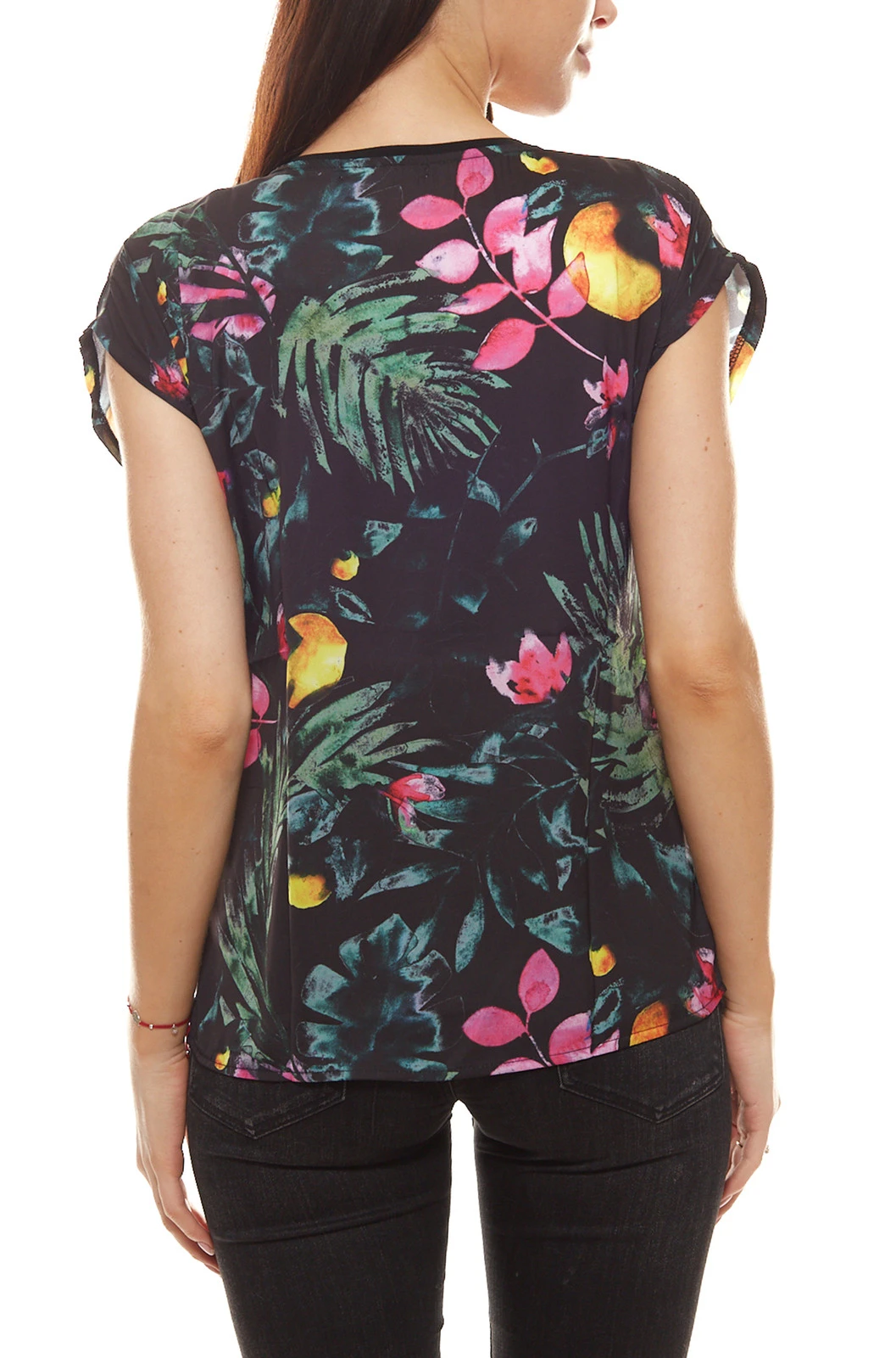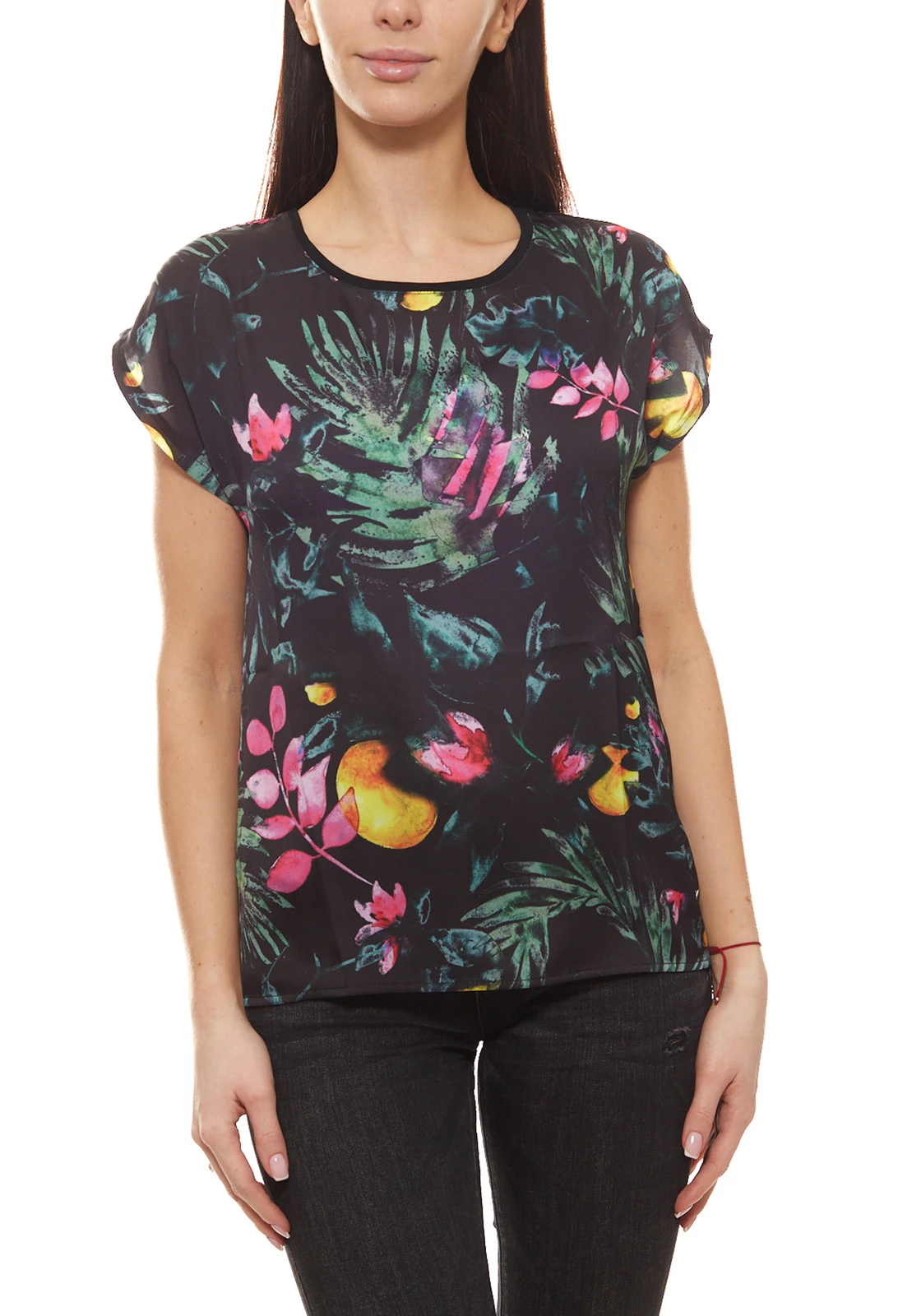 GUIDO MARIA KRETSCHMER Designer-T-Shirt tropisches Damen Sommer-Shirt mit exotischem Muster Schwarz