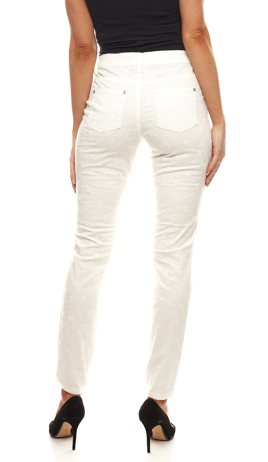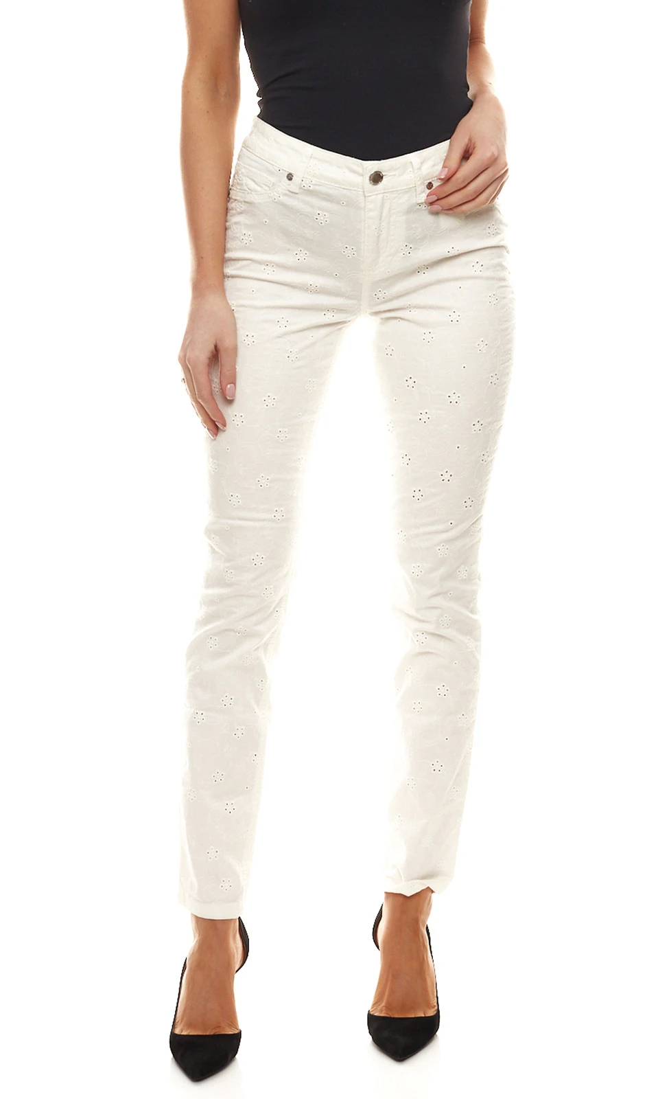 GUIDO MARIA KRETSCHMER Stoff-Hose florale Damen Lockstickerei-Hose Weiß