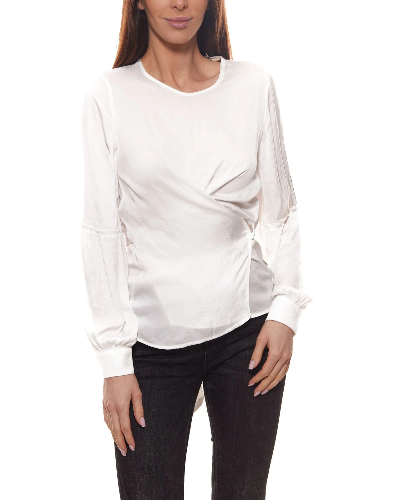 Herrlicher Dilja Seiden-Bluse trageangenehme Damen Langarm-Bluse Weiß