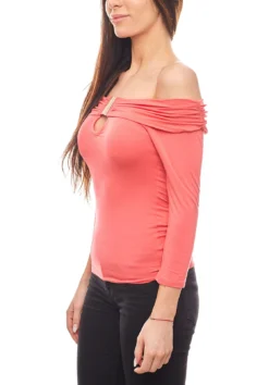 Melrose Shirt Auffälliges Damen 3/4 Arm Shirt Mit Zierschnalle Rot