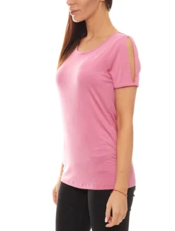 Laura Scott Shirt T-Shirt Schlichtes Damen Sommer-Shirt Mit Cut-Outs An Den Ärmeln Rosé