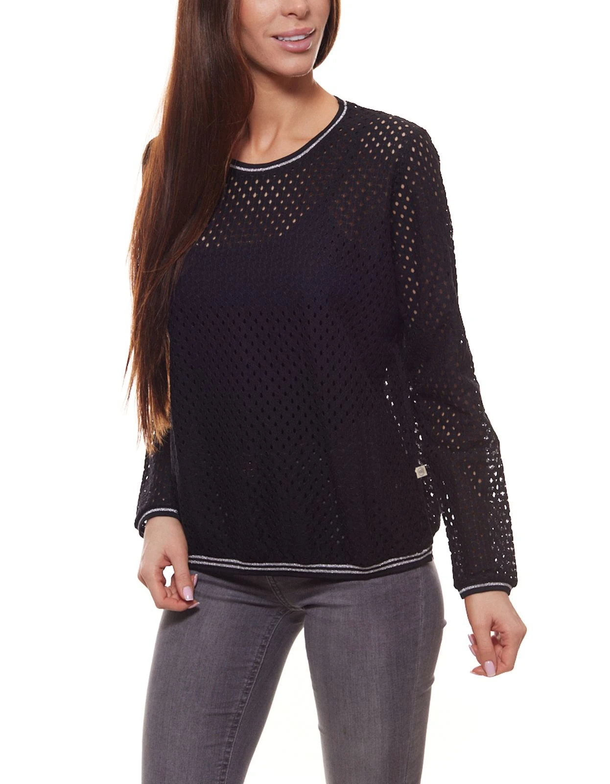Herrlicher Lavia Langarm-Shirt durchsichtiges Damen Netz-Shirt Schwarz