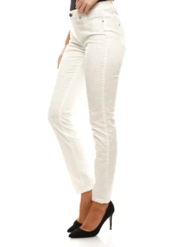 Cmk Stretch-Jeans Stylische Röhren-Hose Damen Im Five-Pocket-Stil Mit Allover-Print Bordeaux