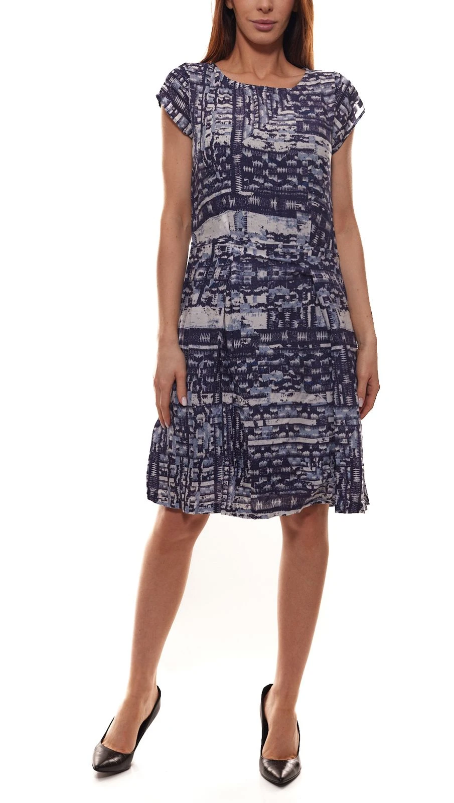 Jake*s Mini-Kleid schickes Damen Freizeit-Kleid mit Allovermuster Marine/Weiß