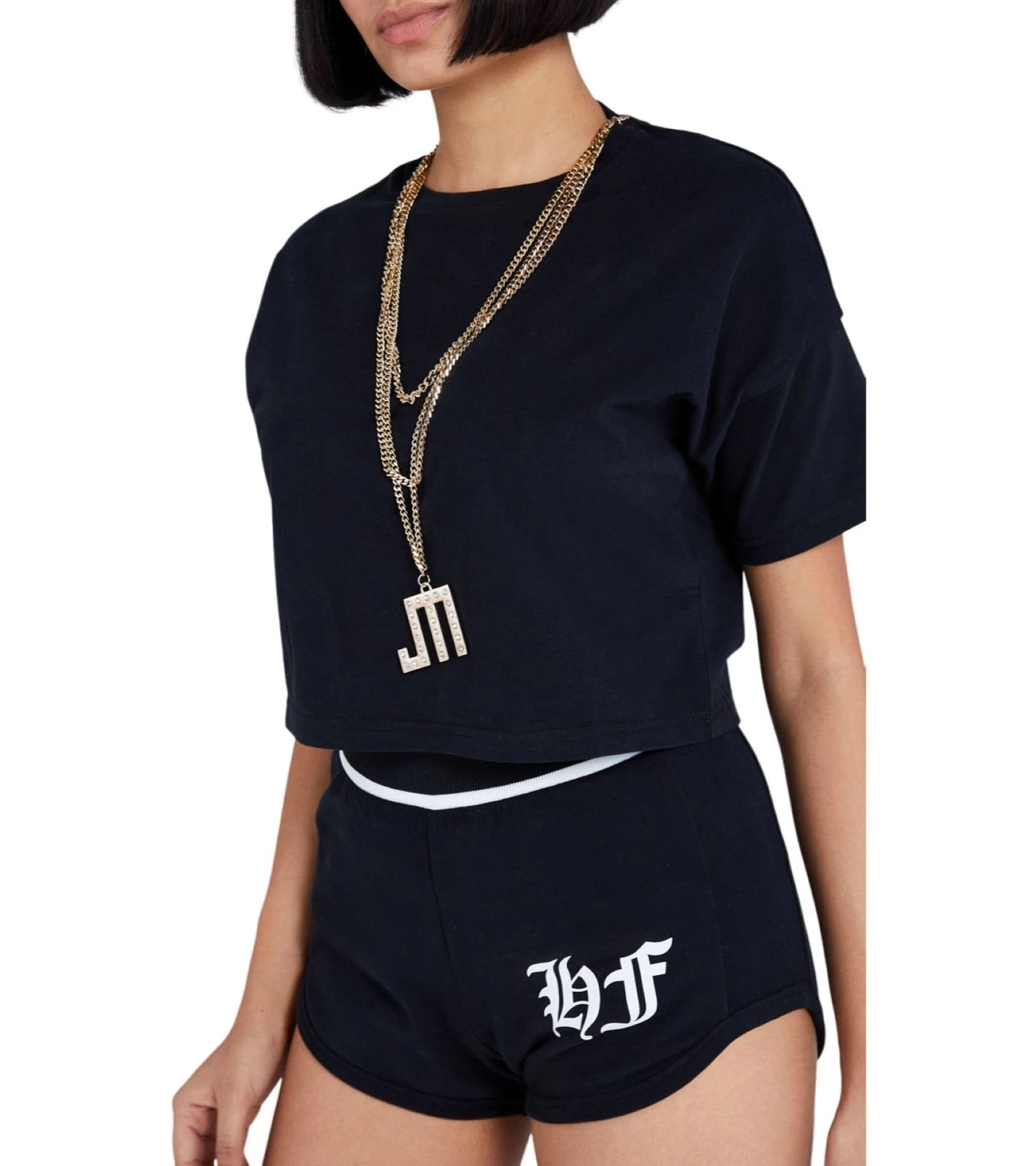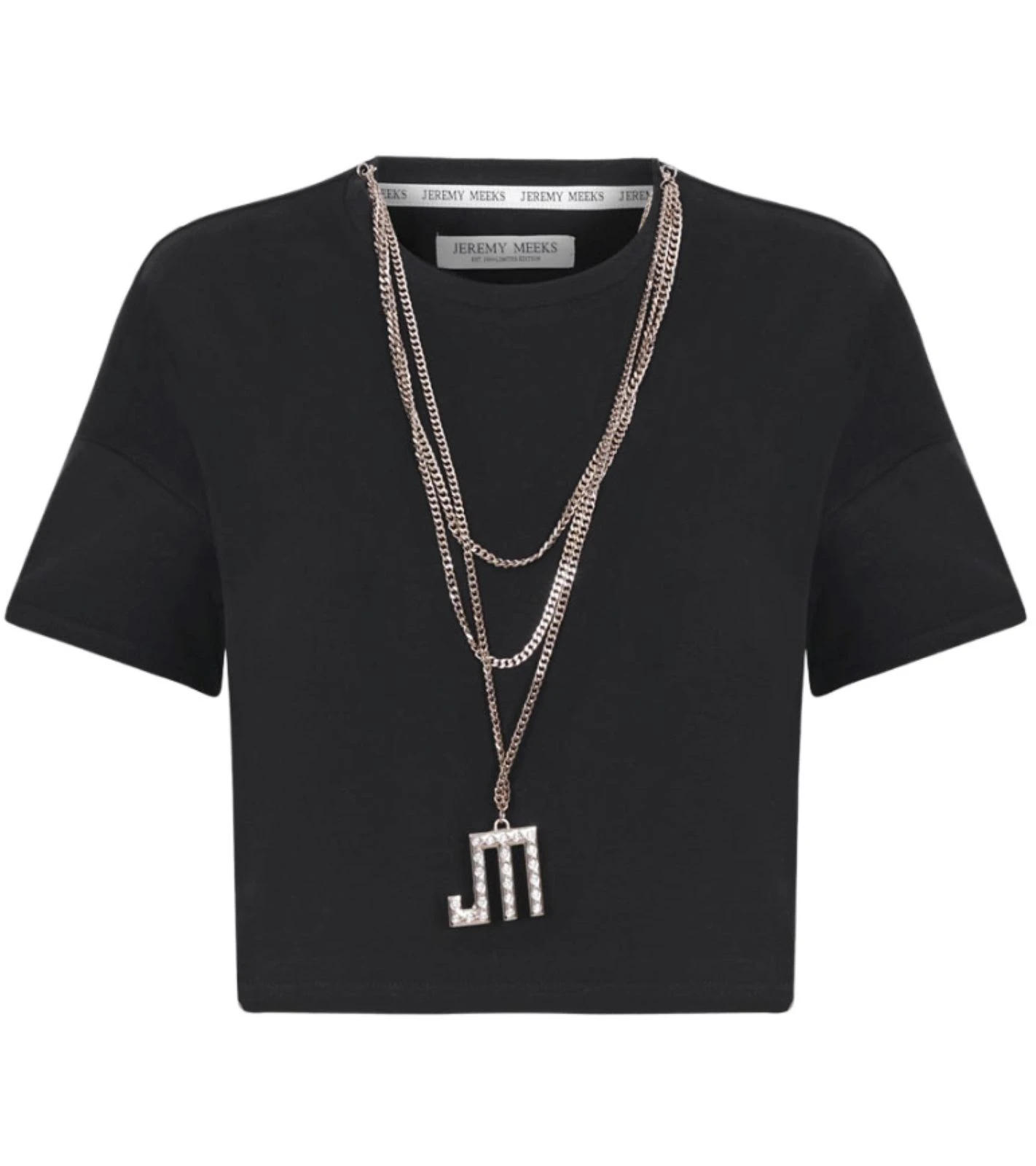 JEREMY MEEKS Damen Cropped-Shirt Daniela mit Kette Schwarz