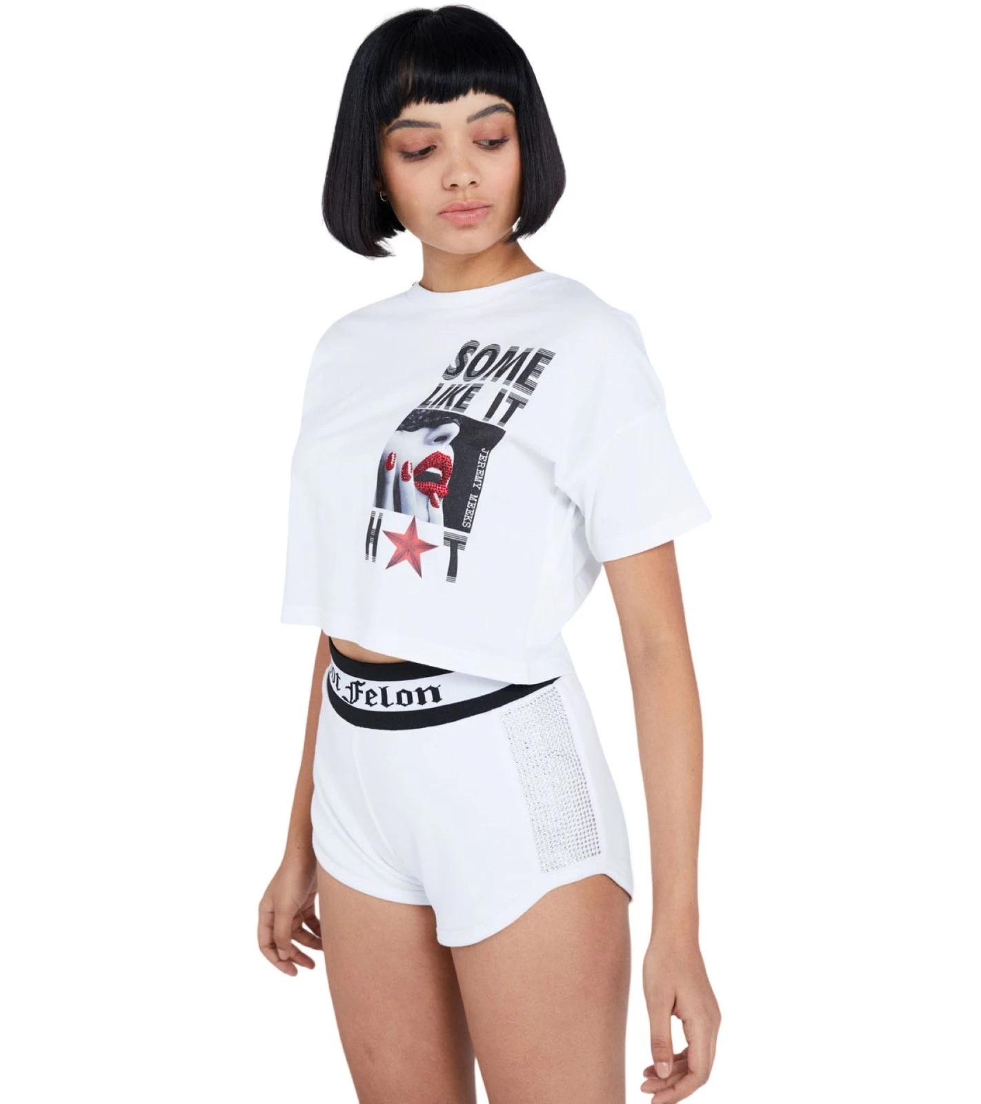 JEREMY MEEKS Damen Cropped-Shirt T-Shirt Some Like it Hot Bianca Weiß