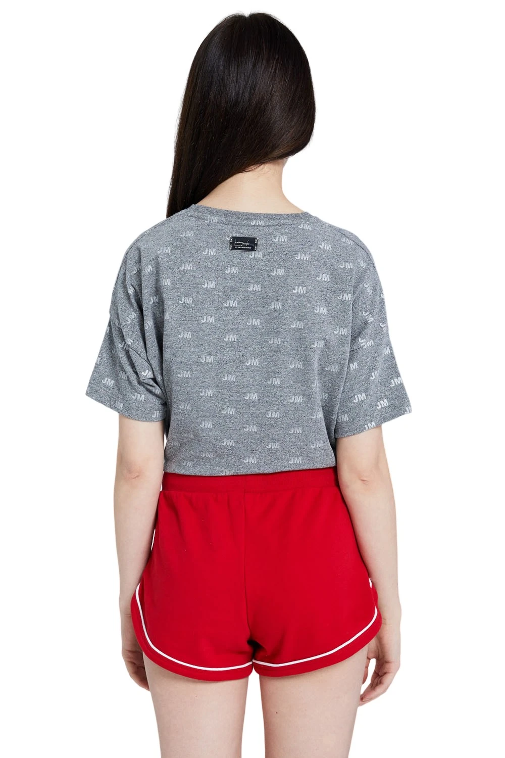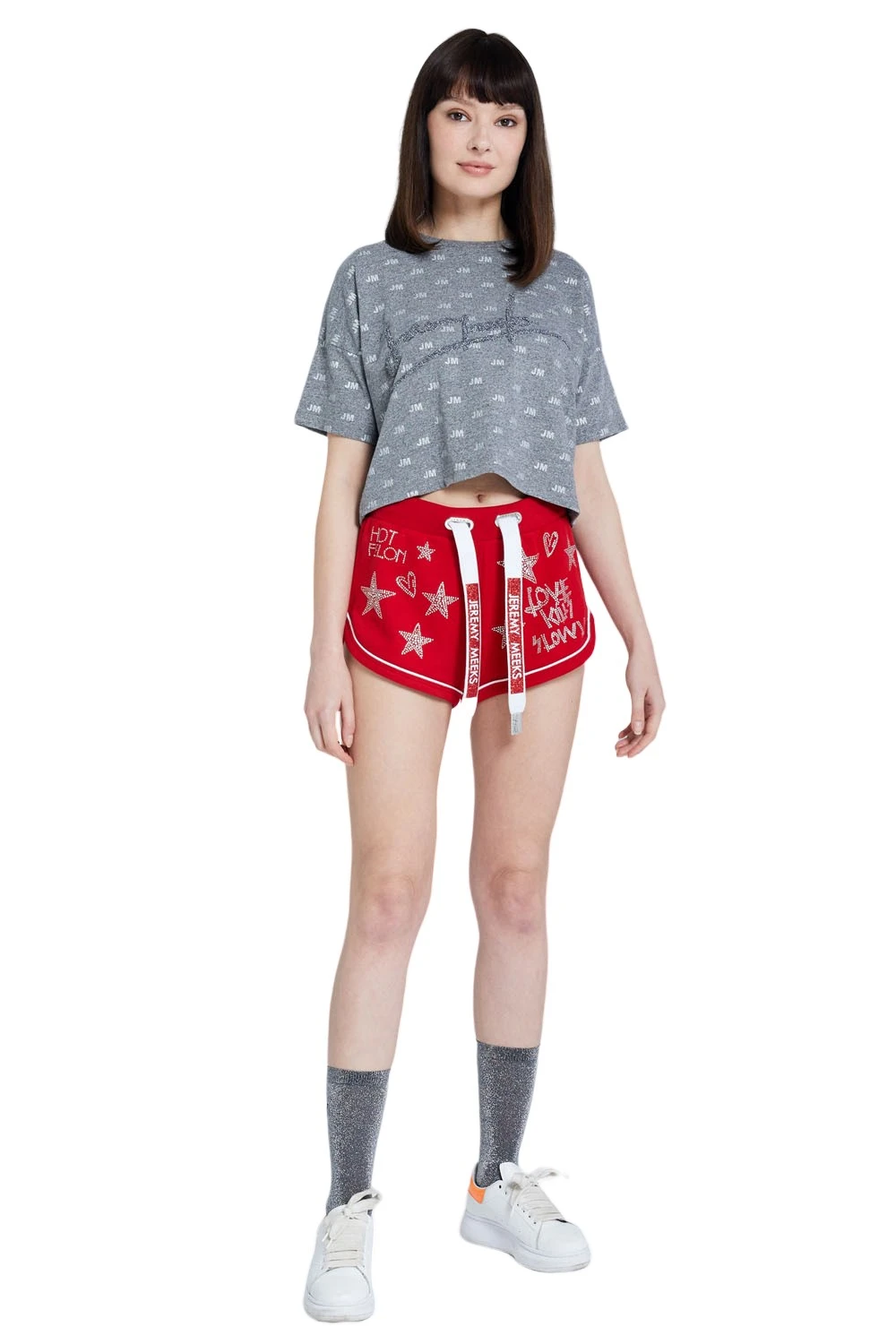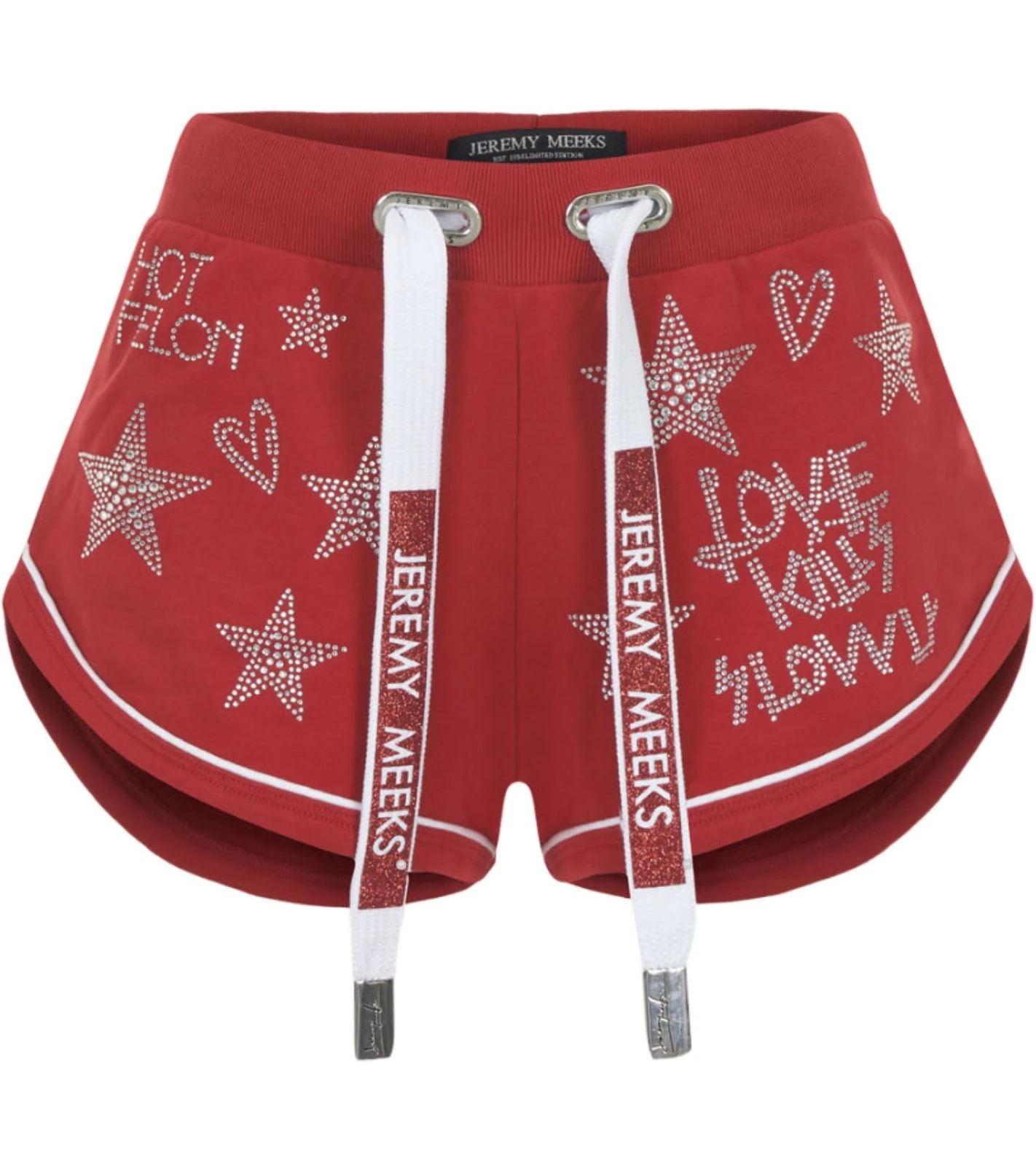 JEREMY MEEKS Damen Hot Pants Sweat-Hose mit Glitzersteinen Ilva Rot