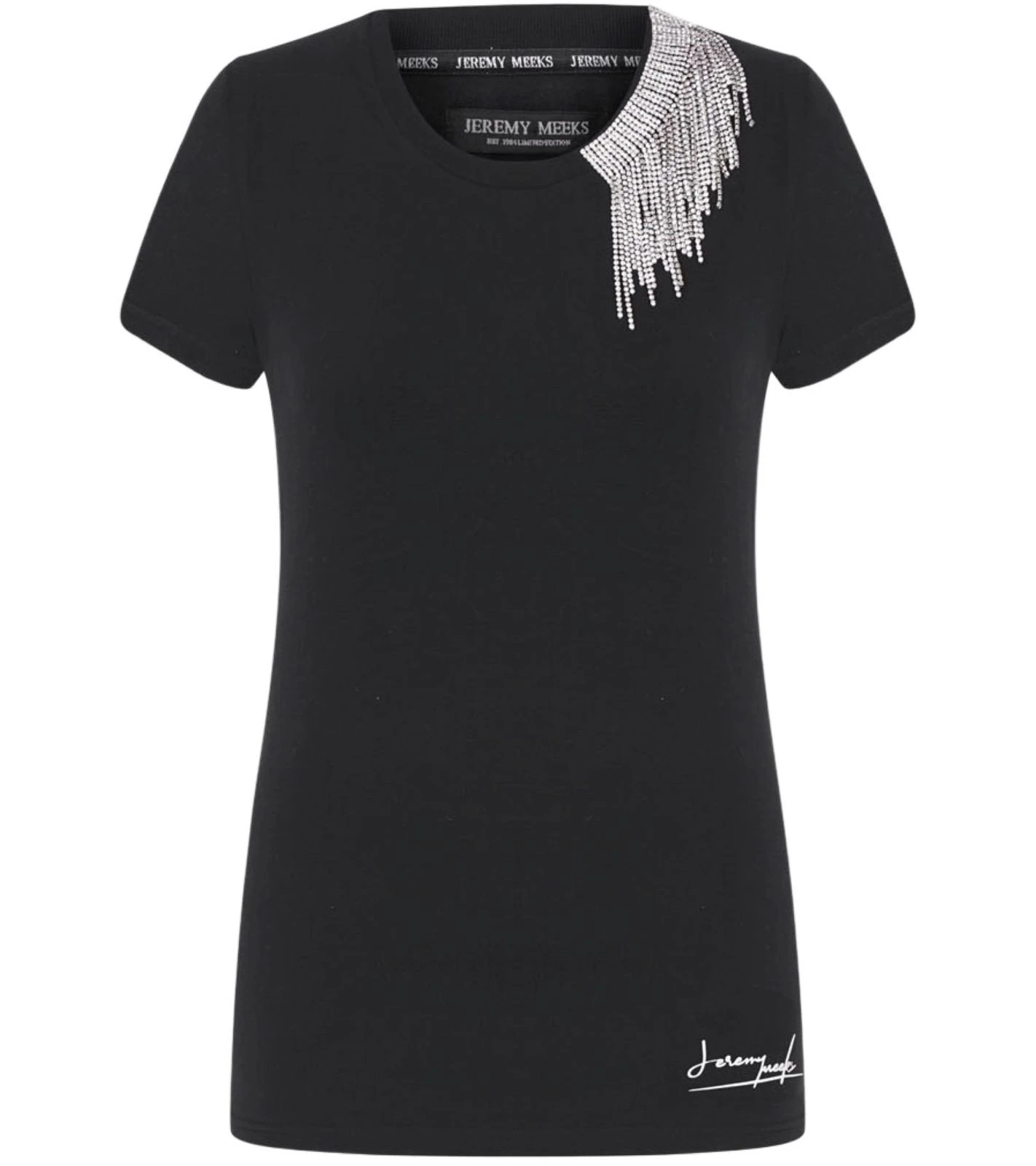 JEREMY MEEKS Damen Kurzarm-Shirt Nicoletta mit Schmuck-Fransen Schwarz
