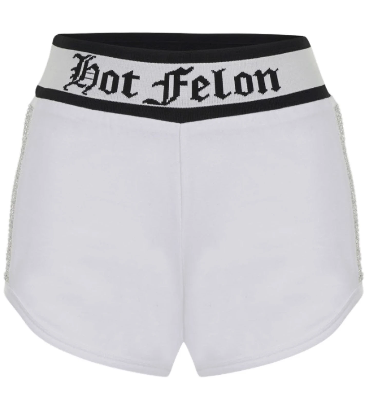 JEREMY MEEKS Damen Shorts Hot Pants mit Glitzersteinen Ilda Weiß