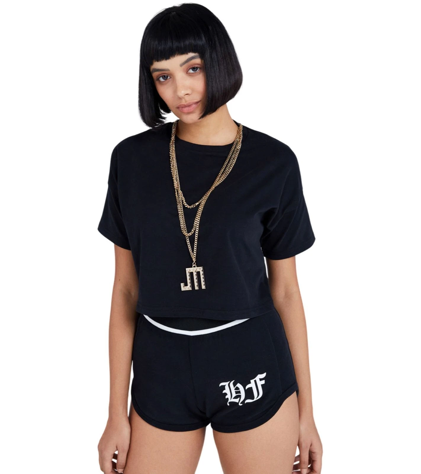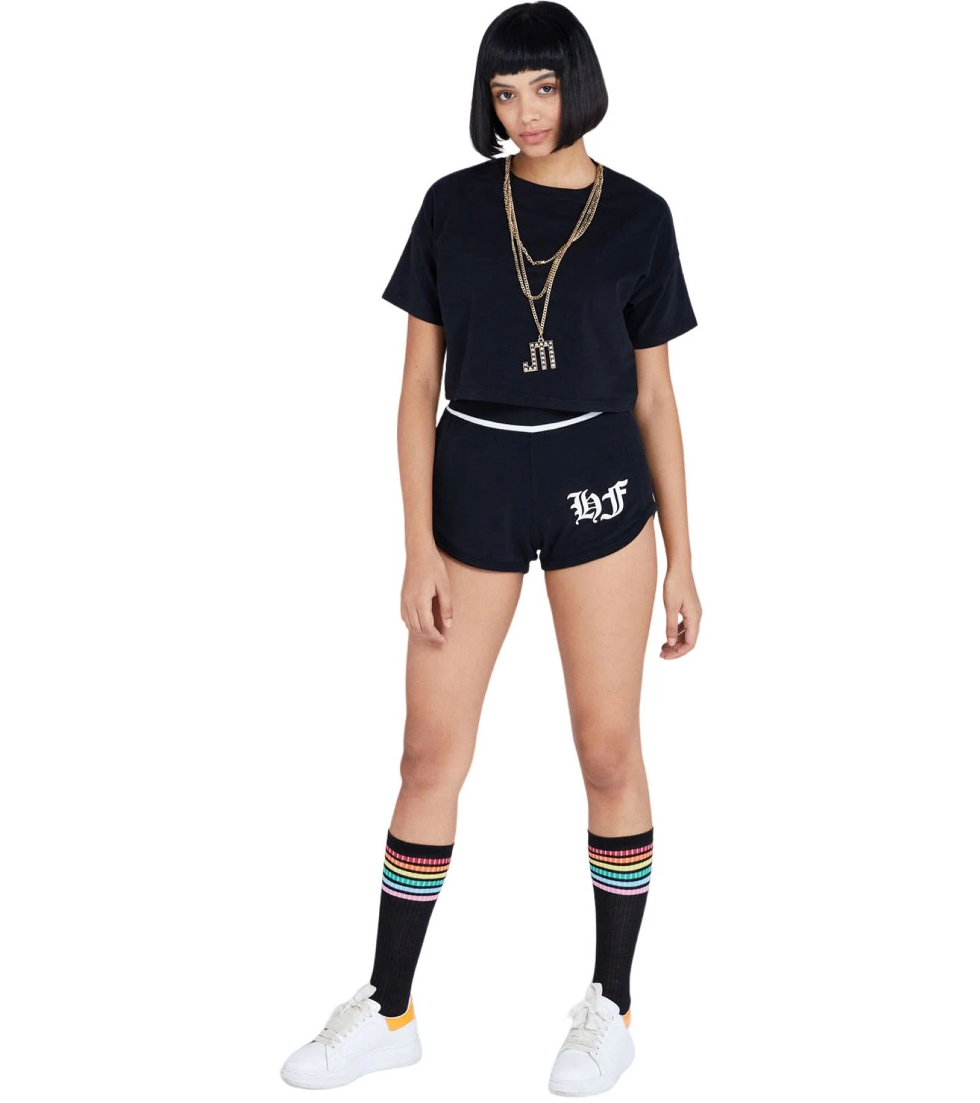 JEREMY MEEKS Damen Sweat-Shorts Hot Pants mit Logoprint Consolata Schwarz