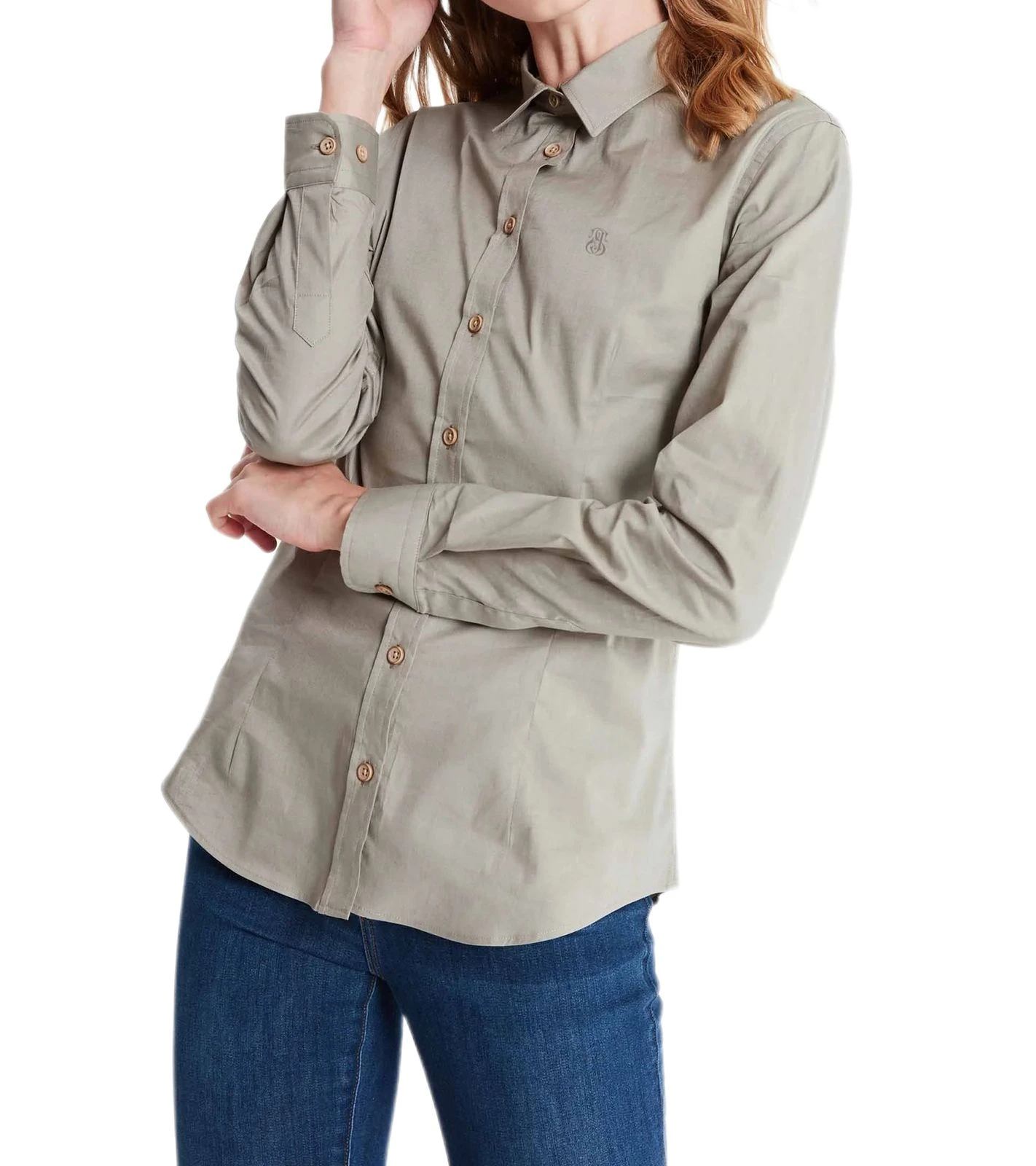 JIMMY SANDERS Damen Langarm-Bluse Hemd Bertina Dunkel-Beige