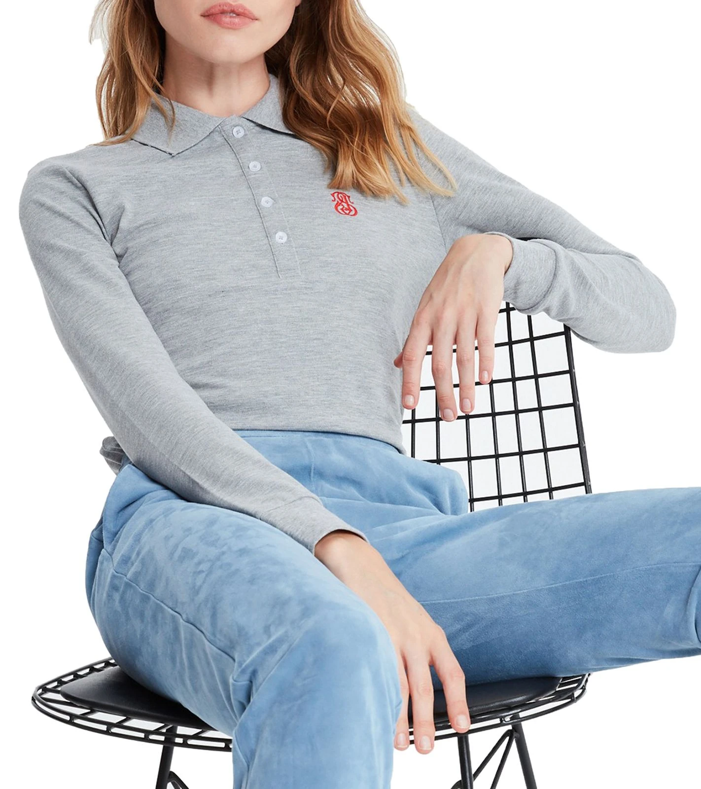 JIMMY SANDERS Damen Langarm-Shirt Polo-Shirt Veronika Grau