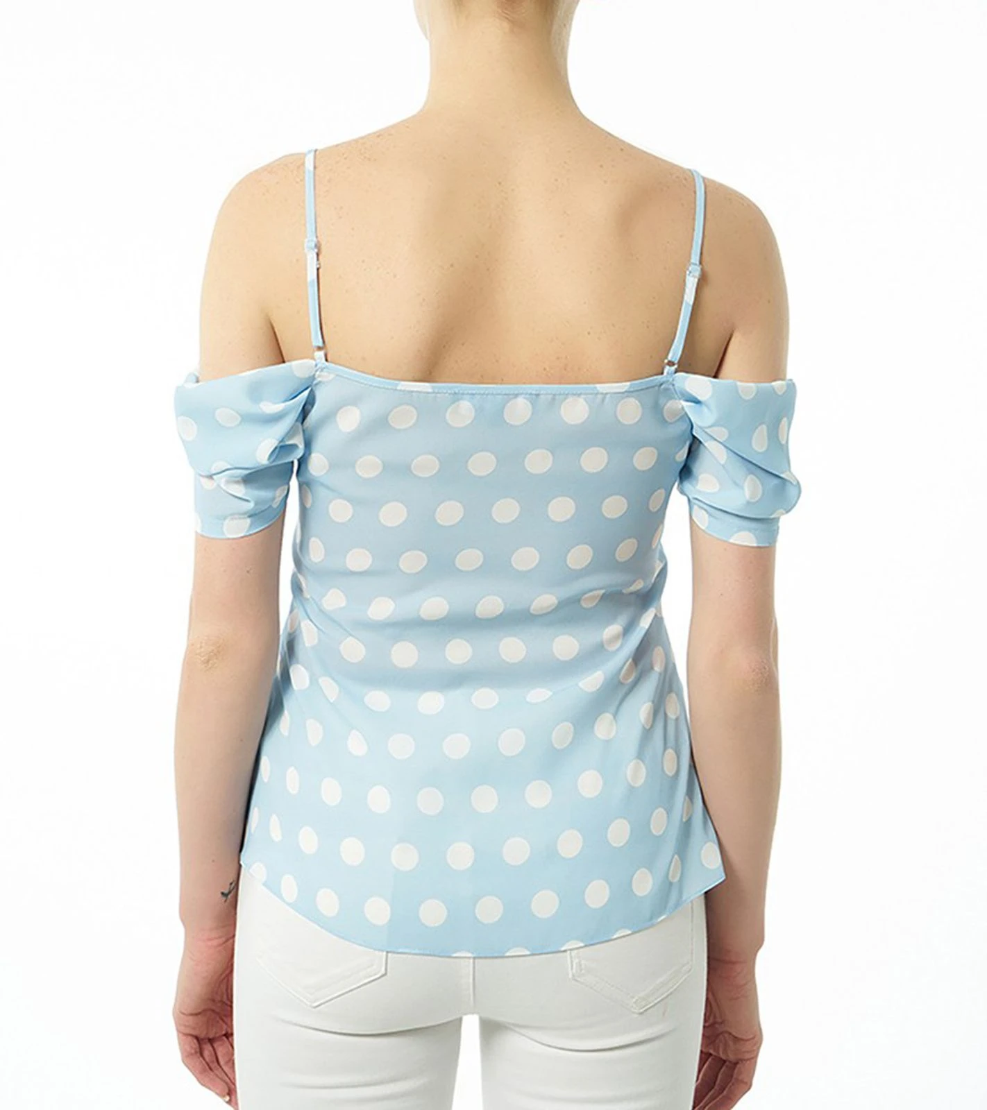 JIMMY SANDERS Damen Off Shoulder-Bluse Sommer-Bluse mit Punkten Benilde Blau/Weiß