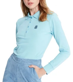 JIMMY SANDERS Damen Polo-Shirt Langarm-Shirt Veronika Hellblau