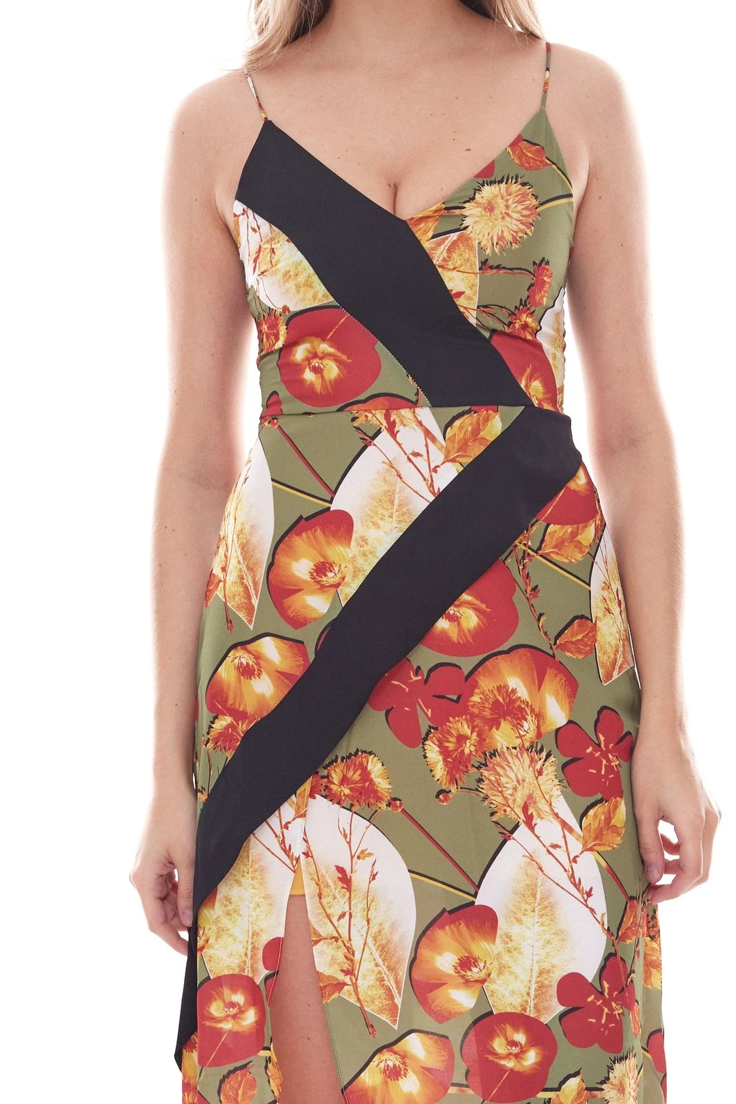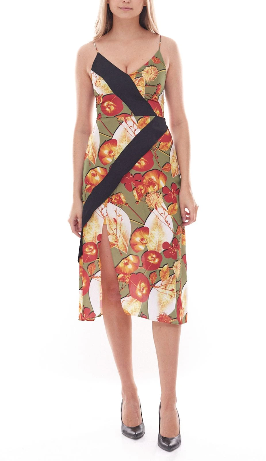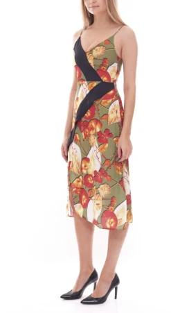 JIMMY SANDERS Vera Damen Midi-Kleid mit Blumendruck 19W DRW42042 V1845 Grün / Bunt