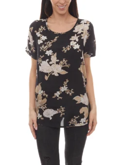 KAFFE Schlupf-Bluse gut kombinierbare Damen Sommer-Bluse mit Blumenprint Schwarz
