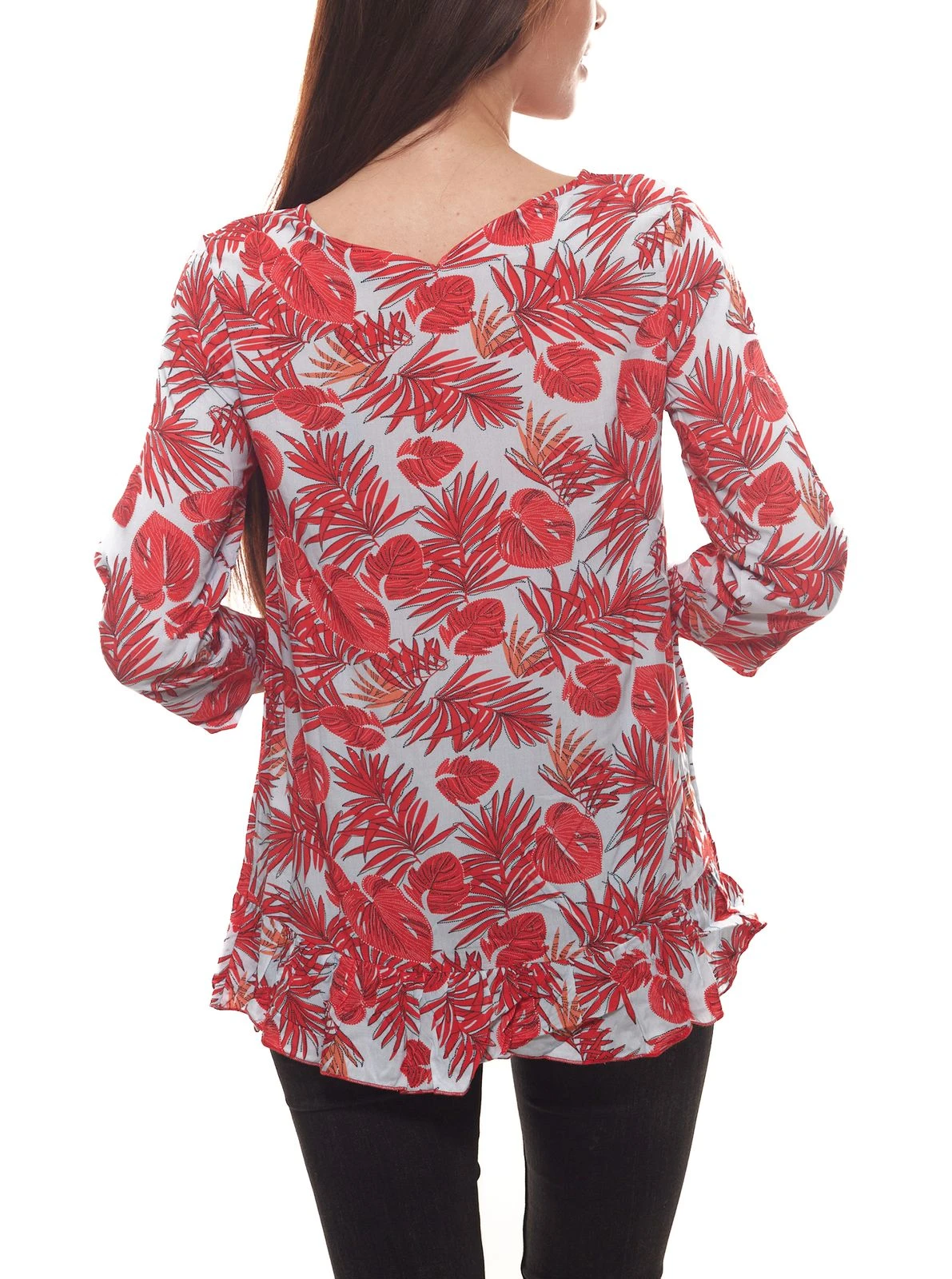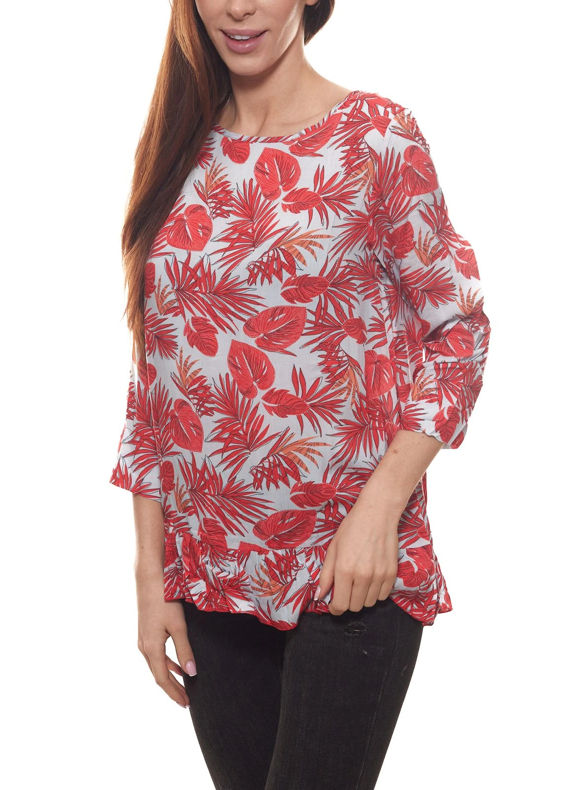 katestorm 3/4-Arm-Bluse zartes Damen Shirt mit Volantbesatz Rot