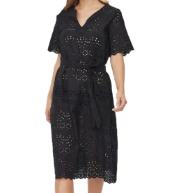 VERO MODA Karolin Kleid Verspieltes Damen Midi-Kleid Mit Lochspitze Aus Bio Baumwolle Schwarz