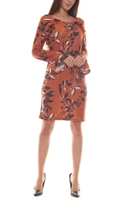 Laura Scott Jersey-Kleid komfortables Damen Mini-Kleid mit Volants Braun