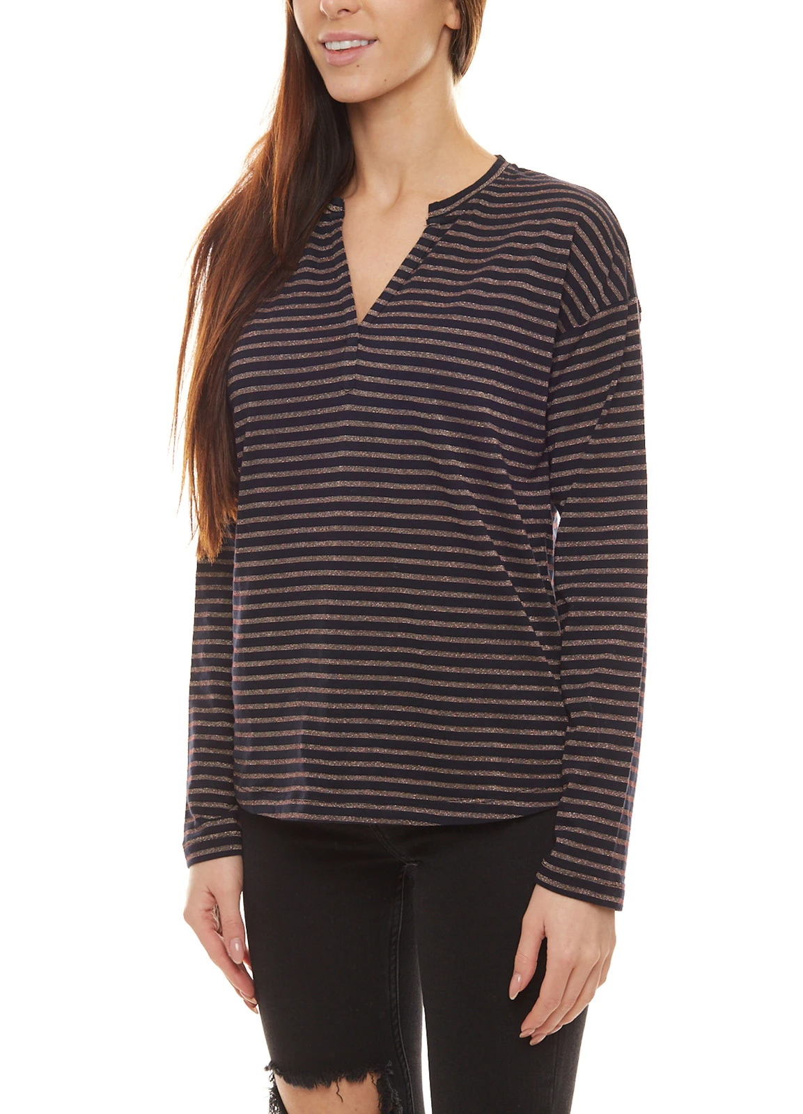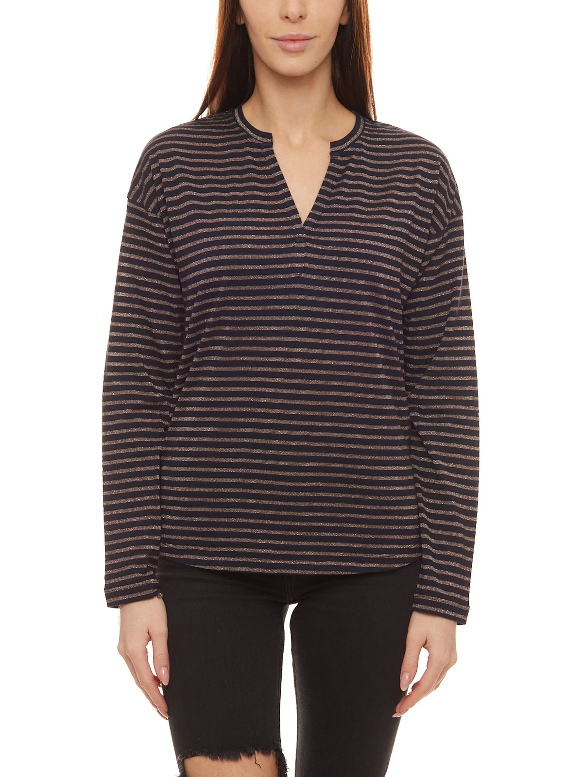 le temps des cerises Pamela Longsleeve-Bluse gestreiftes Damen Herbst-Shirt im Glitzerdesign Schwarz