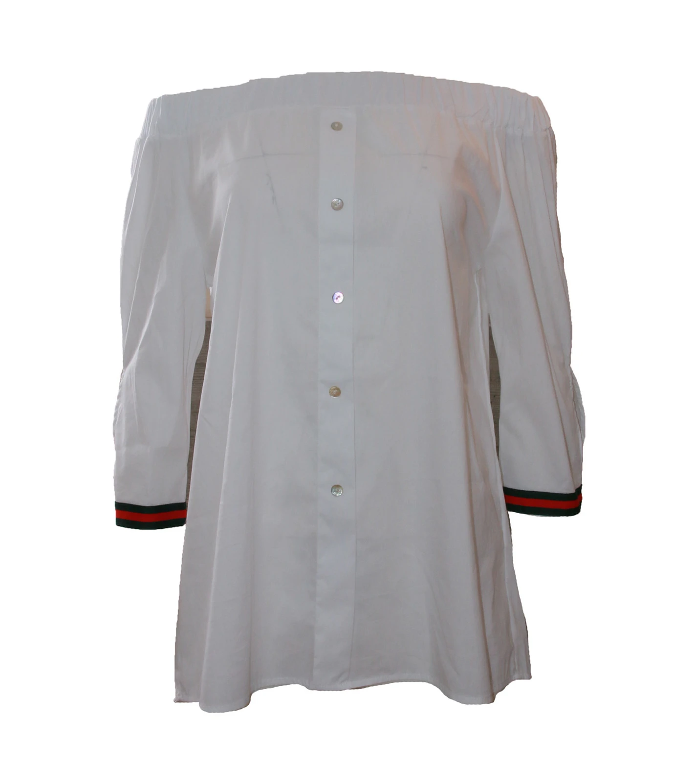 Liebesglück Carmen-Bluse modische Damen Sommer-Bluse mit gesmoktem Ausschnitt Weiß