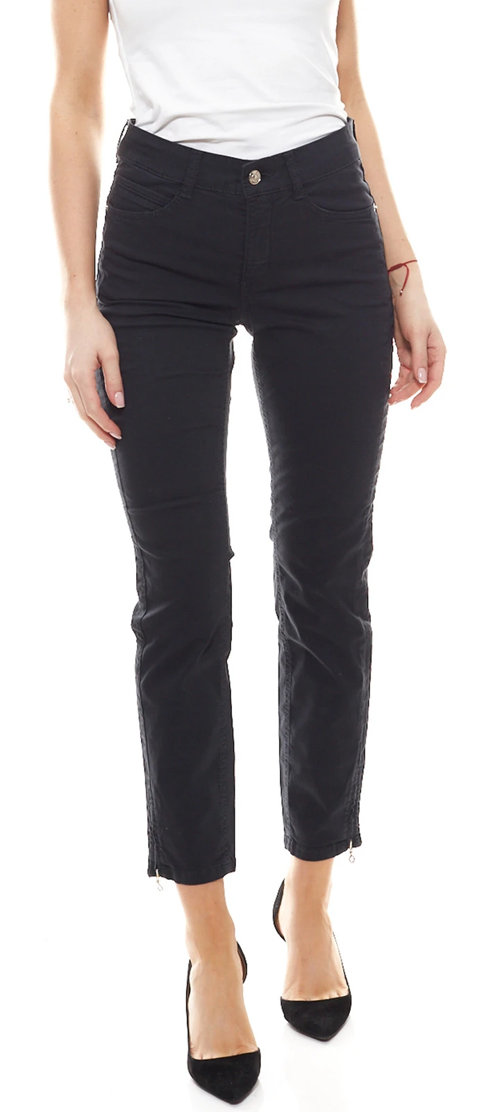 MAC Angela5 Slim-Cropped-Jeans anziehende Damen 7/8-Denim-Hose mit Reißverschluss am Bein-Saum Navy