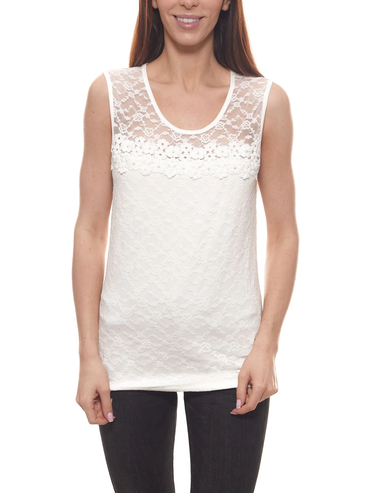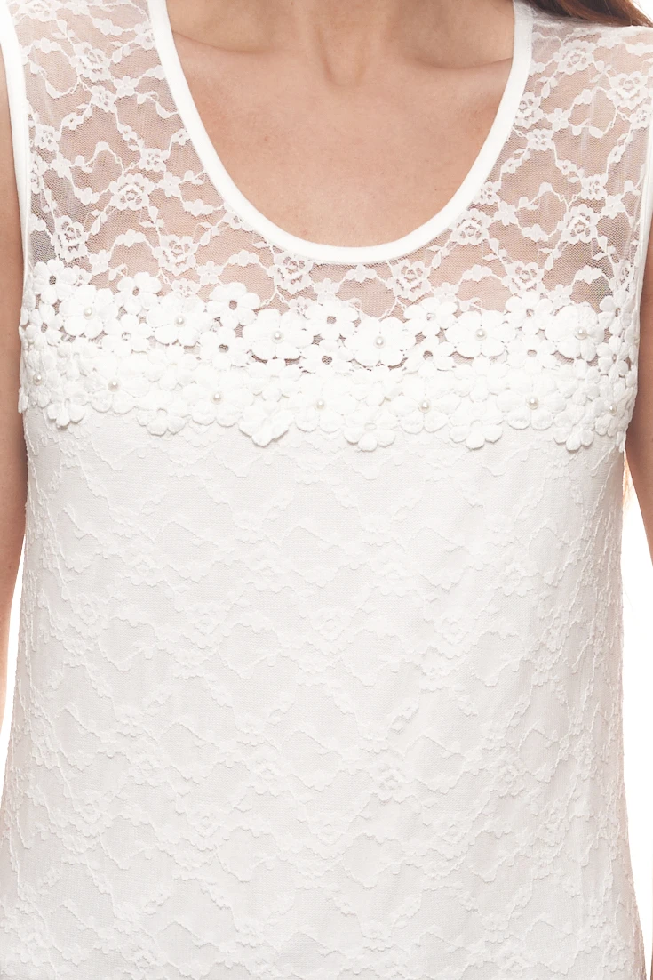 melrose Spitzen-Top stylisches Damen Freizeit-Shirt mit Blumenstickerei und Zierperlen Weiß