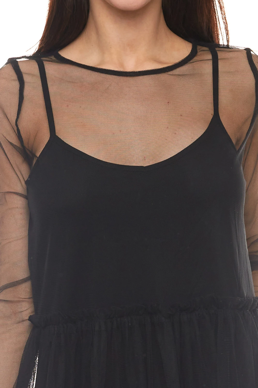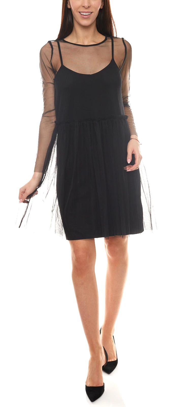 minimum Mini-Kleid teilweise transparentes Damen Kleid im Lagen-Look Schwarz