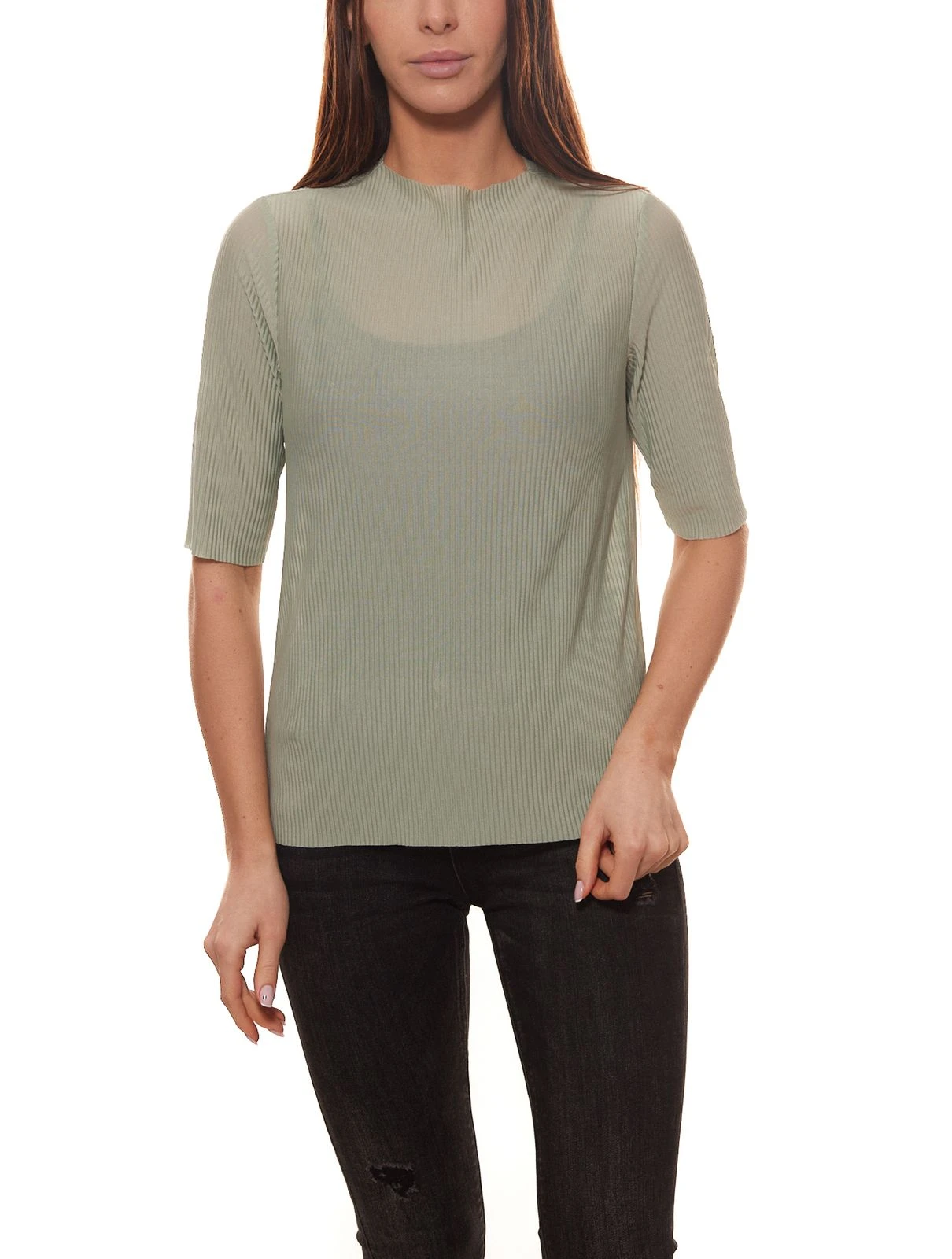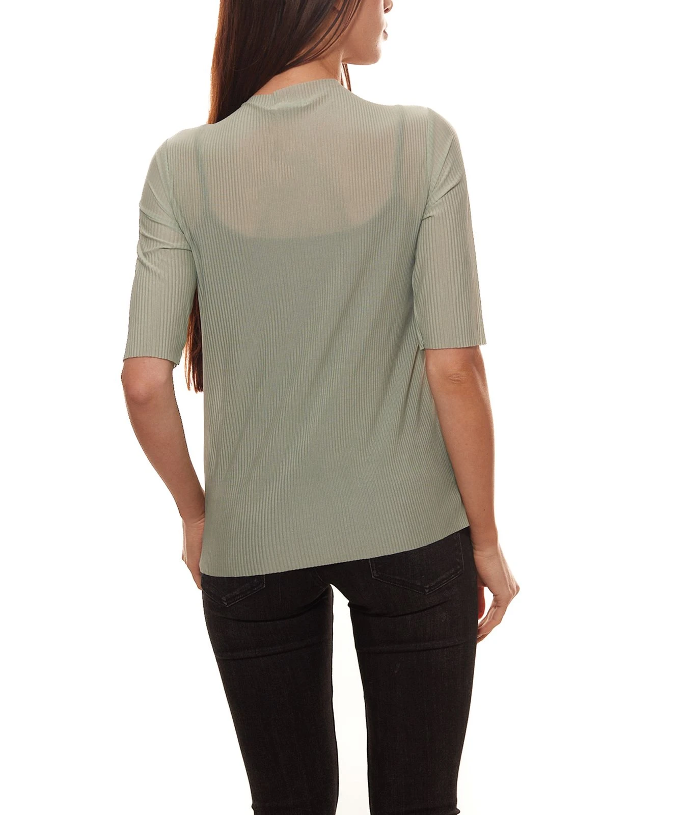NA-KD Damen Shirt durchsichtiges Plissee T-Shirt Hellgrün