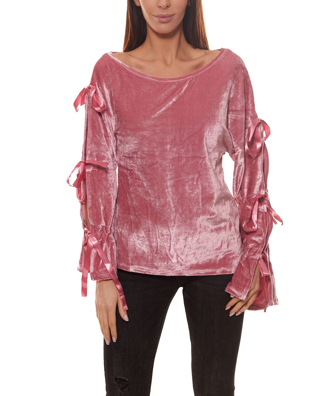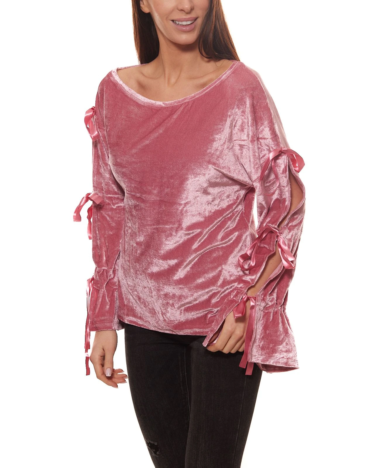 NA-KD Fashion x THERESE LINDGREN Blusen-Shirt coole Damen Samt-Bluse mit Öffnungen am Arm Pink